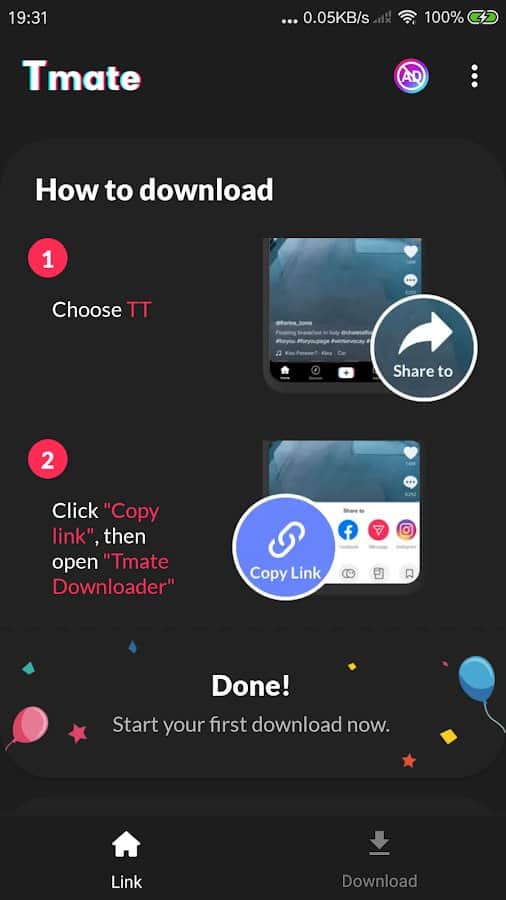 HD Tik Downloader No Watermark - Без входа в личный аккаунт TikTok и без любых водяных знаков этой соцсети, у вас появится возможность скачать понравившиеся видео за несколько кликов. Скачать видео можно с помощью ссылки или кнопки «Поделиться». В первом случае вы копируете ссылку на видео и вставляете её внутри приложения, а во втором сразу делитесь ним с приложением и оно автоматически начинает загрузку. Сохраненные файлы хранятся в одном месте, поэтому ими легко можно управлять.