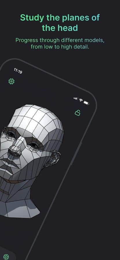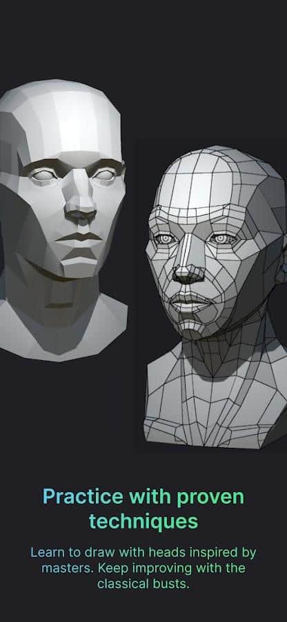 Создайте самые красивые портреты с помощью модели головы. Тщательно изучайте особенности лиц, начиная с простых форм и до сложной геометрии. Это превосходное приложение для Android, которое позволяет детально изучать лица. Поднимите свои эскизы на новый уровень и достигните нового качества.