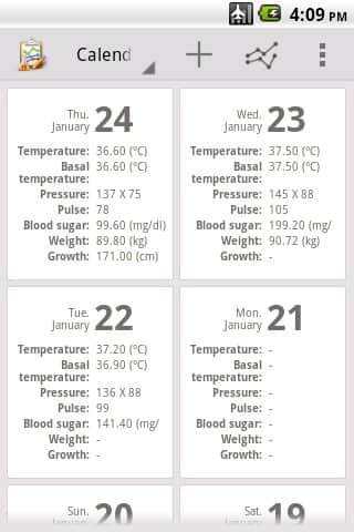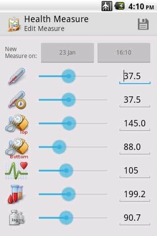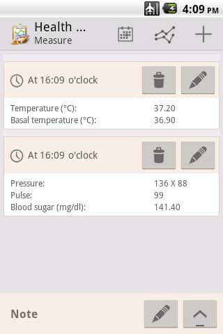 Health Measure Graph - приложение, которое позволяет контролировать изменение различных показателей человеческого тела. Учитываются следующие показатели: общая температура, базальная температура тела, давление, пульс, уровень сахара в крови, вес, рост. Есть возможность составления ежедневных отчётов, на основе ваших данных, также существует возможность составления графиков и диаграмм для каждого отдельно взятого показателя. Приложение позволяет хранить результаты лабораторных анализов. При необходимости добавляем заметки, которые всегда можно прочитать при необходимости. Для того чтобы не забыть сдать анализы вовремя, существует возможность установки напоминаний.