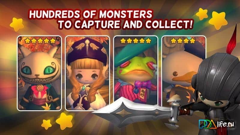 Heart Castle – RPG с фантастическим миром, которая перенесет вас волшебную сказку Алиса в стране чудес. В этой игре вы встретитесь со знакомыми из рассказа персонажами и будете участвовать в эпических битвах. Выбирайте понравившегося героя каждый из них, обладает своими уникальными способностями. Соберите свою неповторимую коллекцию монстров, захватывая их в бою, и получайте уникальные полномочия для ведения боя. Исследуйте весь фантазийный мир, расширяя свои познания в игре и собирая новых монстров и оружие. В игре присутствуют несколько режимов один из них авто – для боев с вашими монстрами в автоматическом режиме.