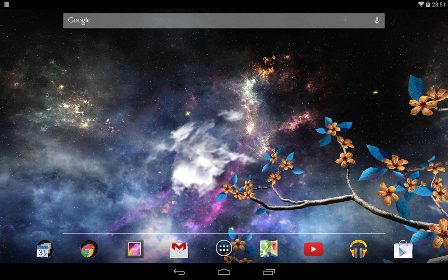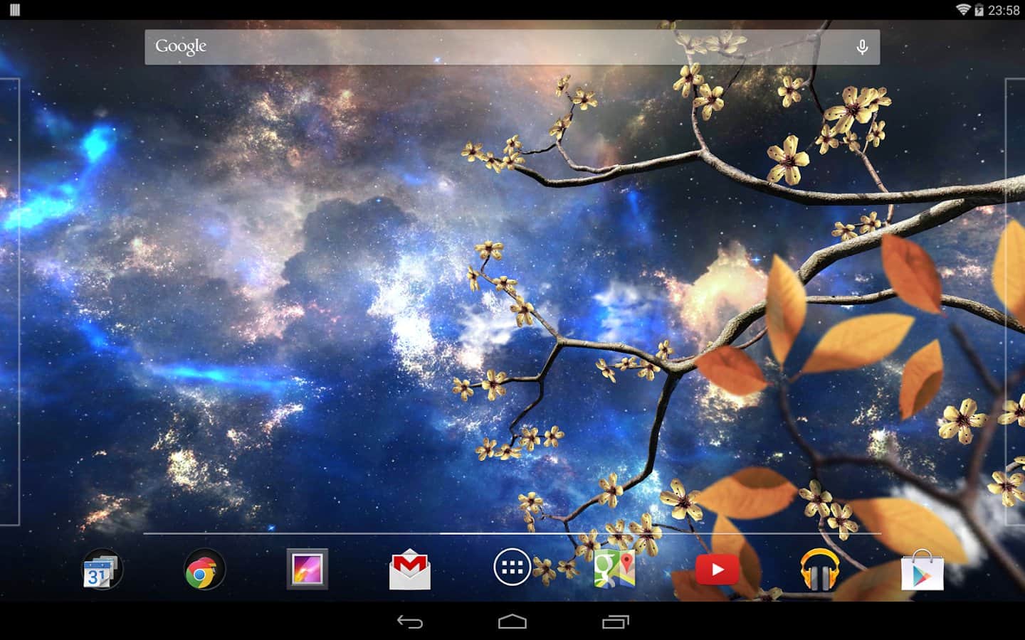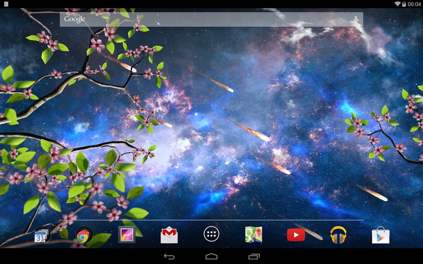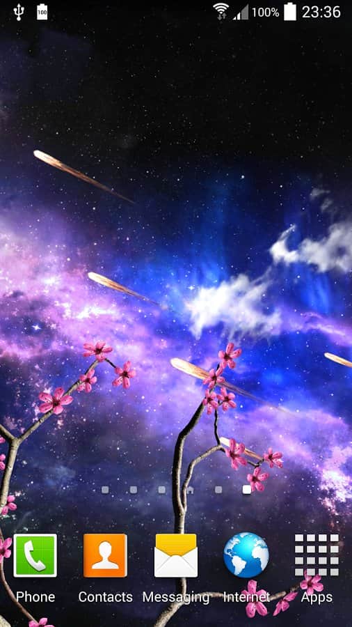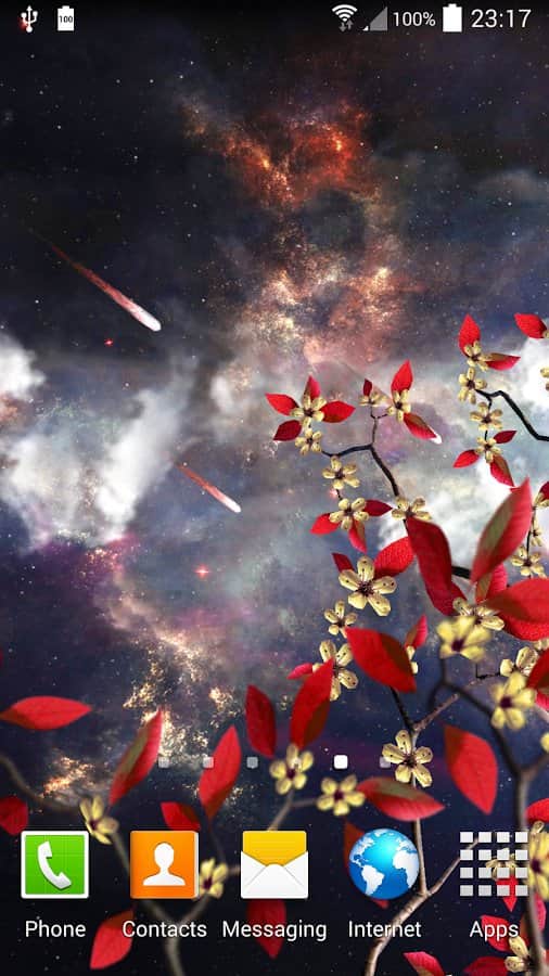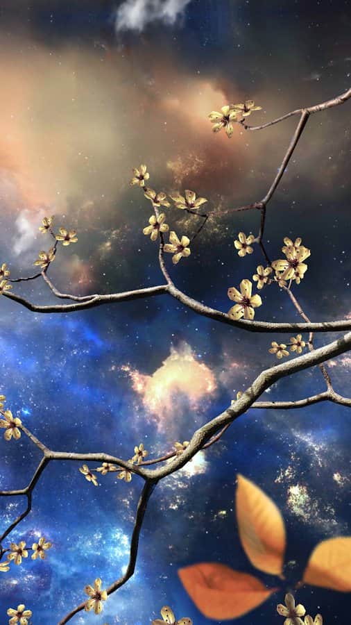 Heavenly Skies - Отличные обои для тех кто хочет полюбоваться ночным небом и открытым космосом. Качественно исполнена анимация всех элементов, динамические облака, ветер, метеоры, листья, цветы и многое другое. Так же вы сами сможете изменить цвет, сцены и много другого. Наслаждайтесь безграничным небом на экране своего девайса.