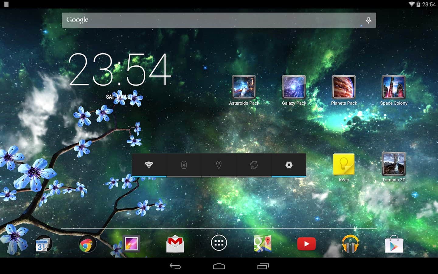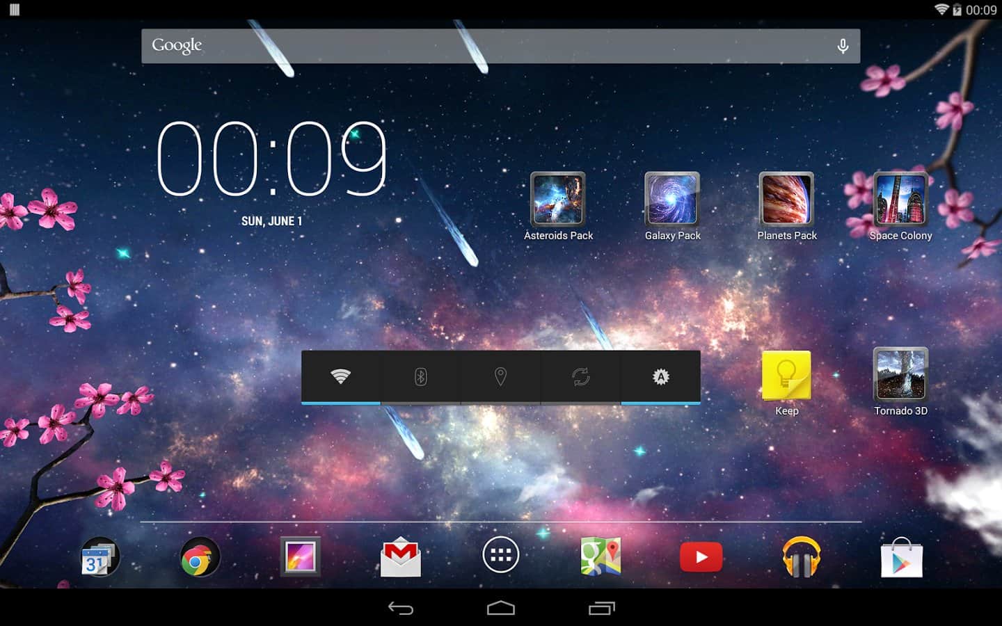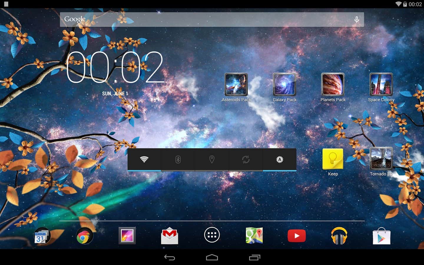 Heavenly Skies - Отличные обои для тех кто хочет полюбоваться ночным небом и открытым космосом. Качественно исполнена анимация всех элементов, динамические облака, ветер, метеоры, листья, цветы и многое другое. Так же вы сами сможете изменить цвет, сцены и много другого. Наслаждайтесь безграничным небом на экране своего девайса.