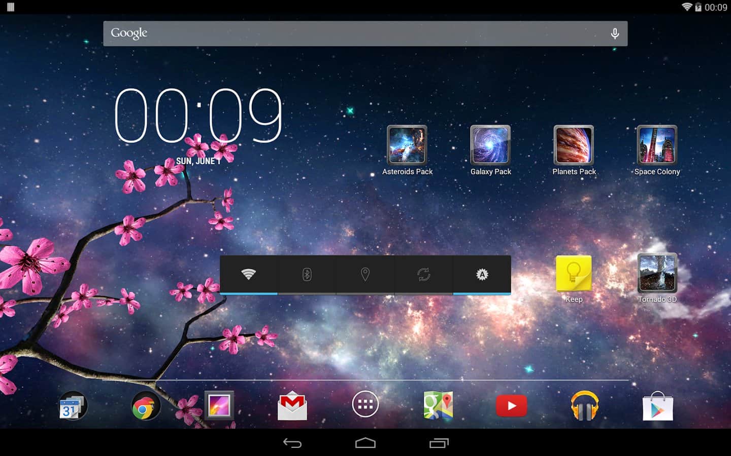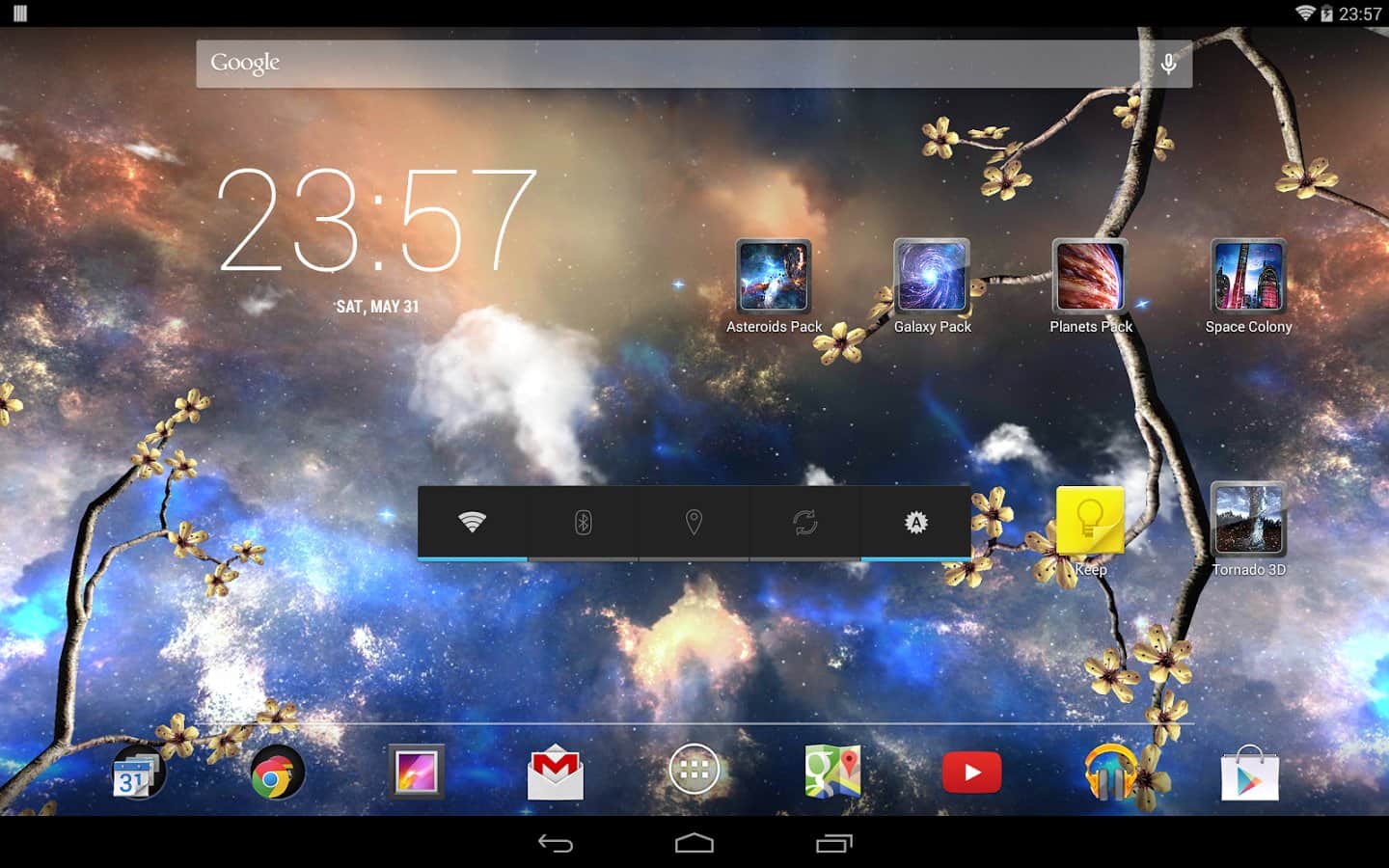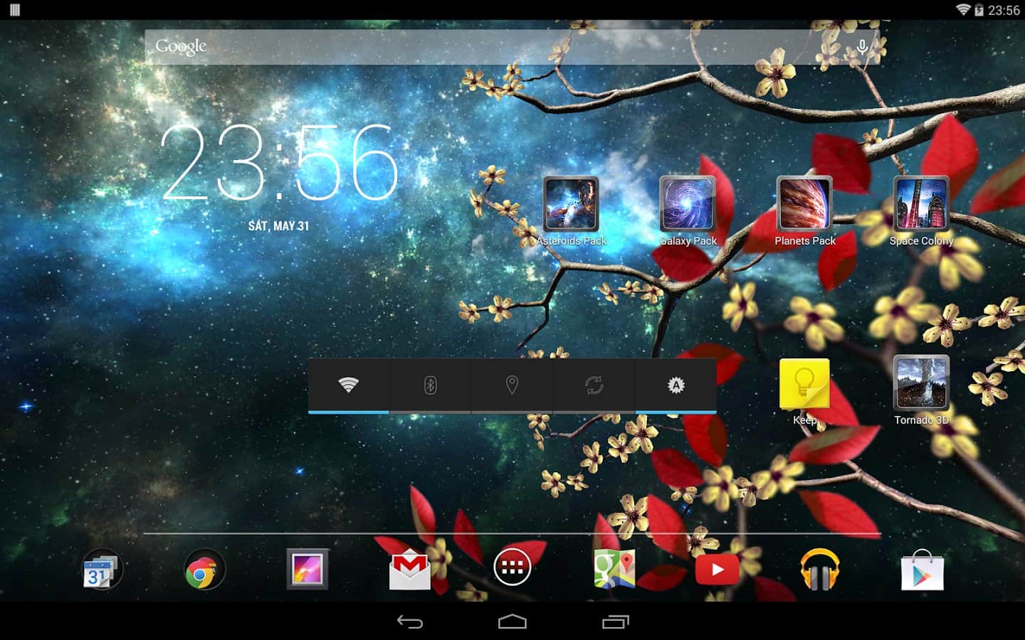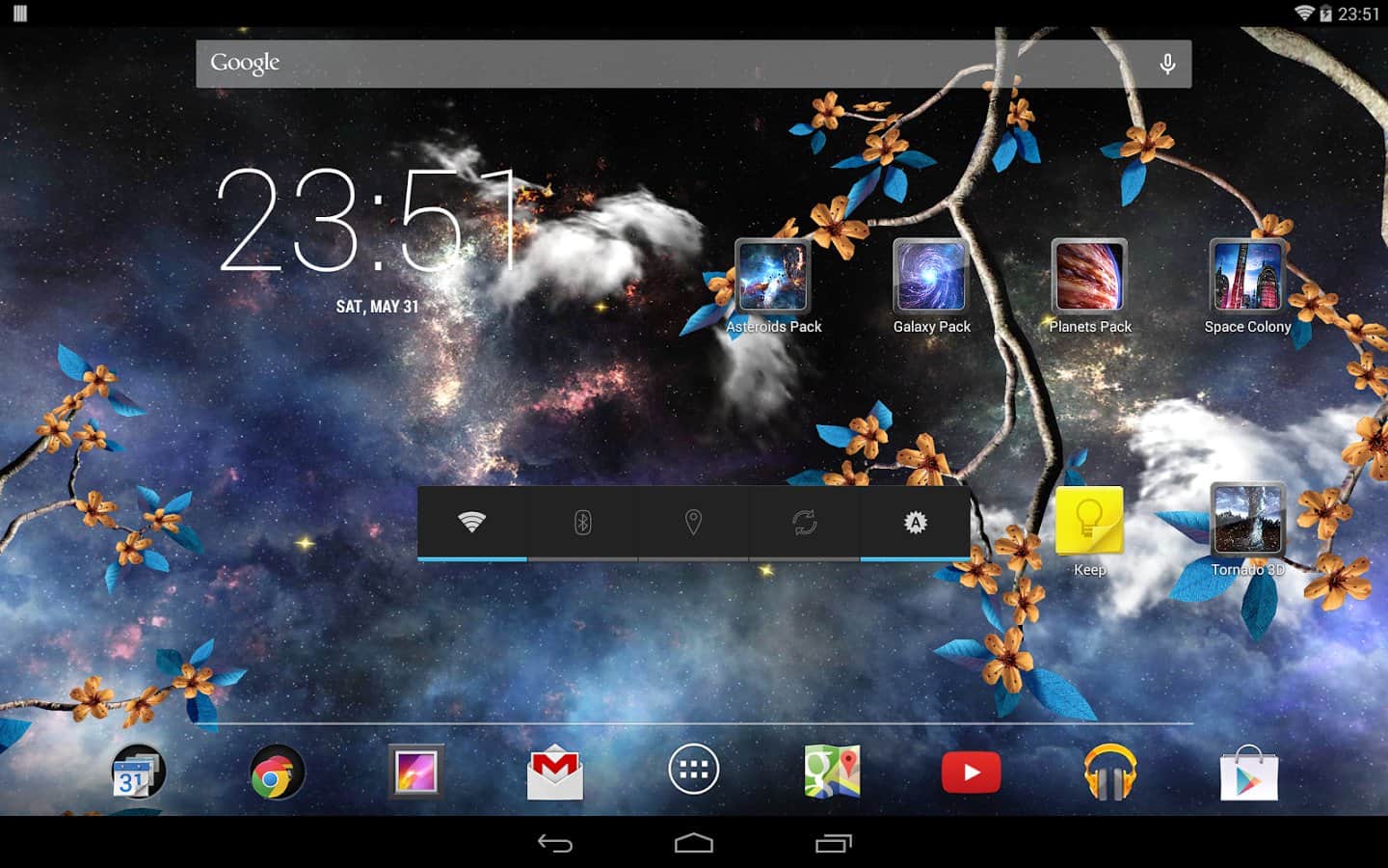 Heavenly Skies - Отличные обои для тех кто хочет полюбоваться ночным небом и открытым космосом. Качественно исполнена анимация всех элементов, динамические облака, ветер, метеоры, листья, цветы и многое другое. Так же вы сами сможете изменить цвет, сцены и много другого. Наслаждайтесь безграничным небом на экране своего девайса.