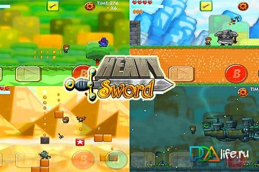 HEAVY sword - красочный платформер для андроид в стиле приставочной игры Супер Марио. Главный герой - молодой и энергичный парень, ищущий приключений! На протяжении всех уровней, он будет бегать, прыгать, отбиваться от орков и роботов! Его путь далек и проходи через знойный Египет, заснеженные горы, тропические леса и пр. Не забывайте собирать монетки и использовать разнообразное оружие - от лука с ядовитыми стрелами до метательных кинжалов и бомб! А чтобы немножко отдохнуть от напряженной игры, имеются мини-игры!