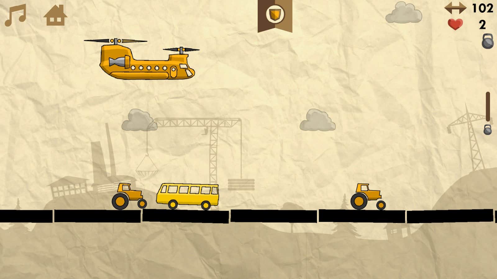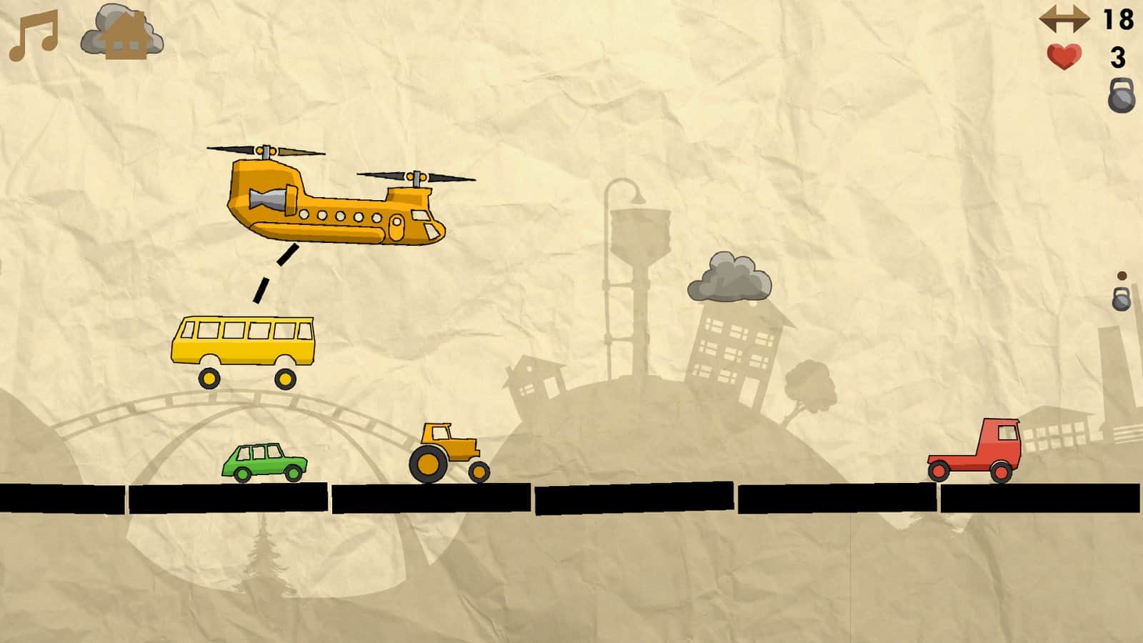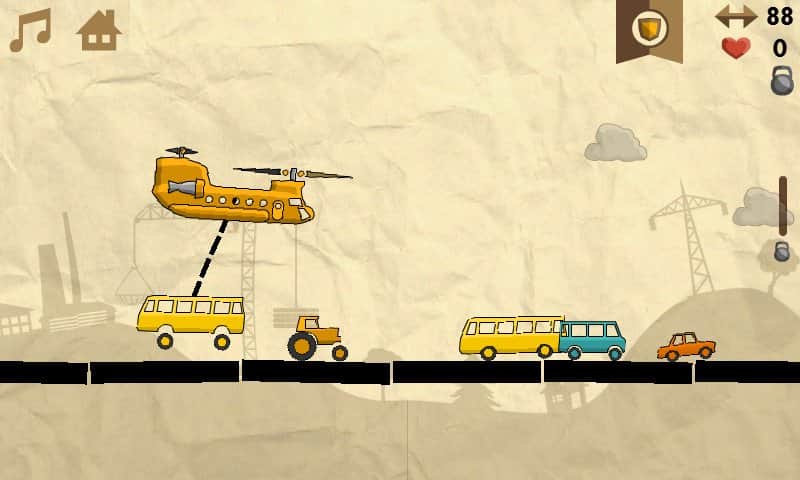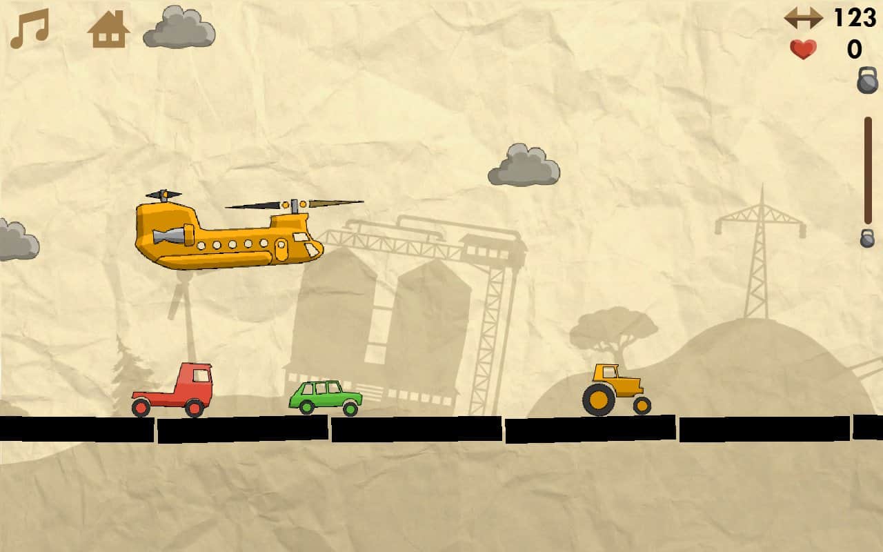 Heli Runner – управляйте полетом грузового вертолета цель которого погрузить как можно больше машин на свой борт. Этот увлекательный раннер на андроид, с графикой в рисованном стиле порадует вас неповторимыми уровнями и многочисленными автомобилями. Управляйте высотой полета грузового вертолета и собирайте машины, которые едут по дороге. Вашей главной задачей при этом будет избегать столкновений с облаками, которые будут отнимать у вас жизни. Собирайте усиления и бонусы и наслаждайтесь легким управлением с помощью специальных кнопок находящихся в разных углах экрана.