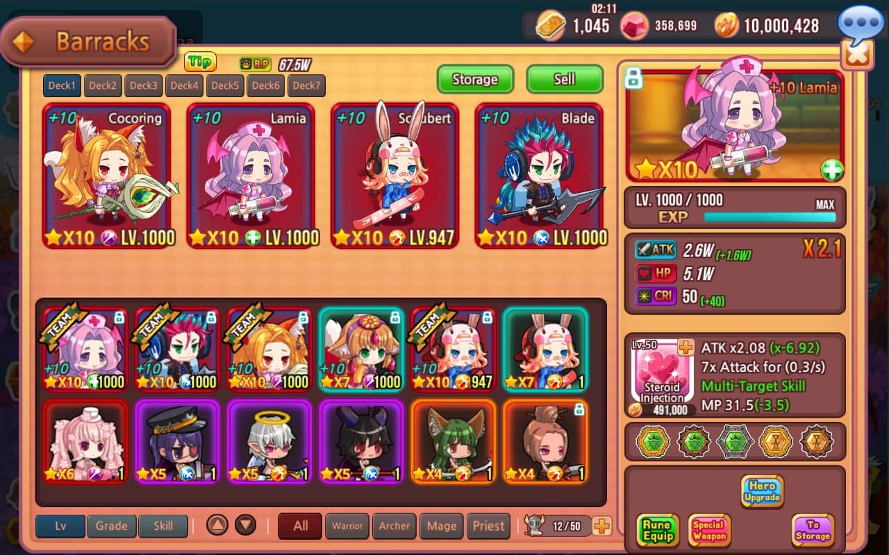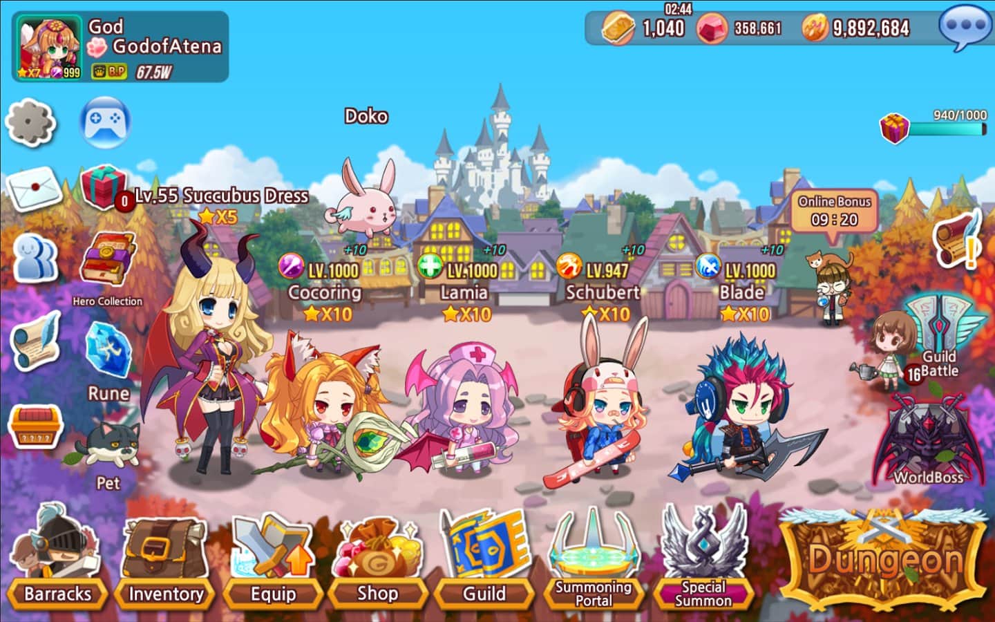 Hero Collection RPG – соберите свой отряд героев и дайте отпор злым силам и монстрам. В этой игре вы будете помогать отважной принцессе, освободить свой замок от врагов. Спускайтесь в темные подземелья и пещеры и сражайтесь там с многочисленными монстрами, которые будут поджидать вас на каждом шагу. Ведите свой отряд вперед через фантастические локации игры и собирайте ценные трофеи и предметы. Применяйте умения и магию каждого героя и побеждайте сильных боссов на своем пути. Создавайте различное оружие и приобретайте новые костюмы для героев. Пополняйте свой отряд новыми героями и создавайте свои непобедимые гильдии с другими игроками.