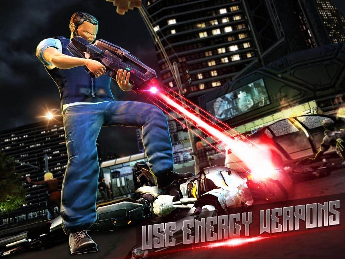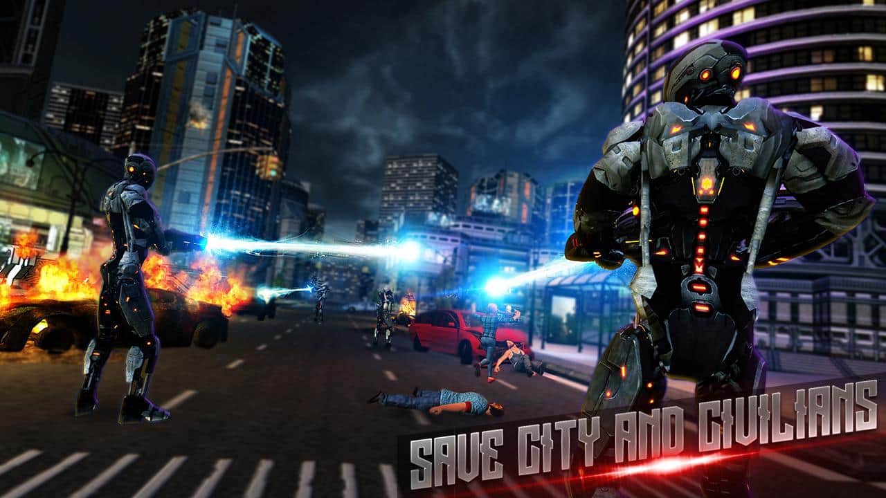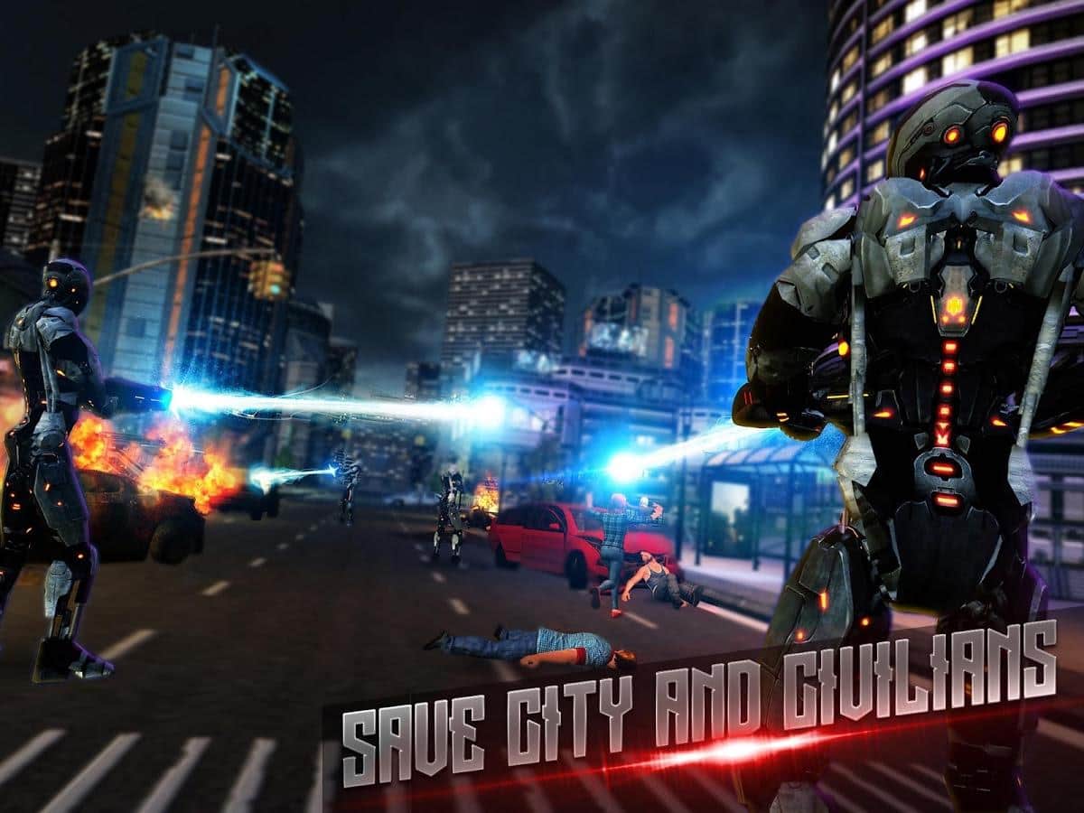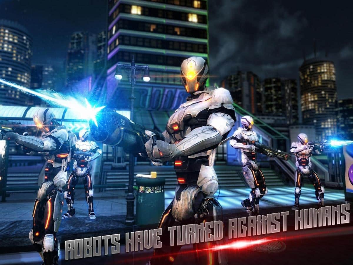 Hero Robot Battle – захватывающий экшен на андроид, где вы будете подавлять восстание искусственного интеллекта. Эта игра перенесет вас в недалекое будущее, где вы работали инженером в крупной компании по производству роботов для армии. Однажды у всех роботов поменялась программы и вместо того чтобы защищать мирных жителей, они выбрали людей в качестве цель для уничтожения. Теперь вашей задачей будет уничтожать с помощью современного оружия роботов и перемещаться по различным локациям стараясь добраться до главного компьютера, отвечающего за искусственный интеллект роботов. Выполняйте все миссии игры и открывайте для себя новое фантастическое оружие.