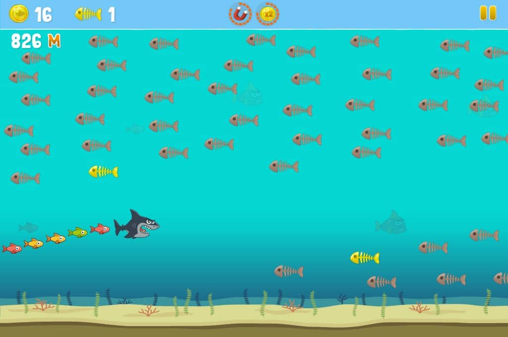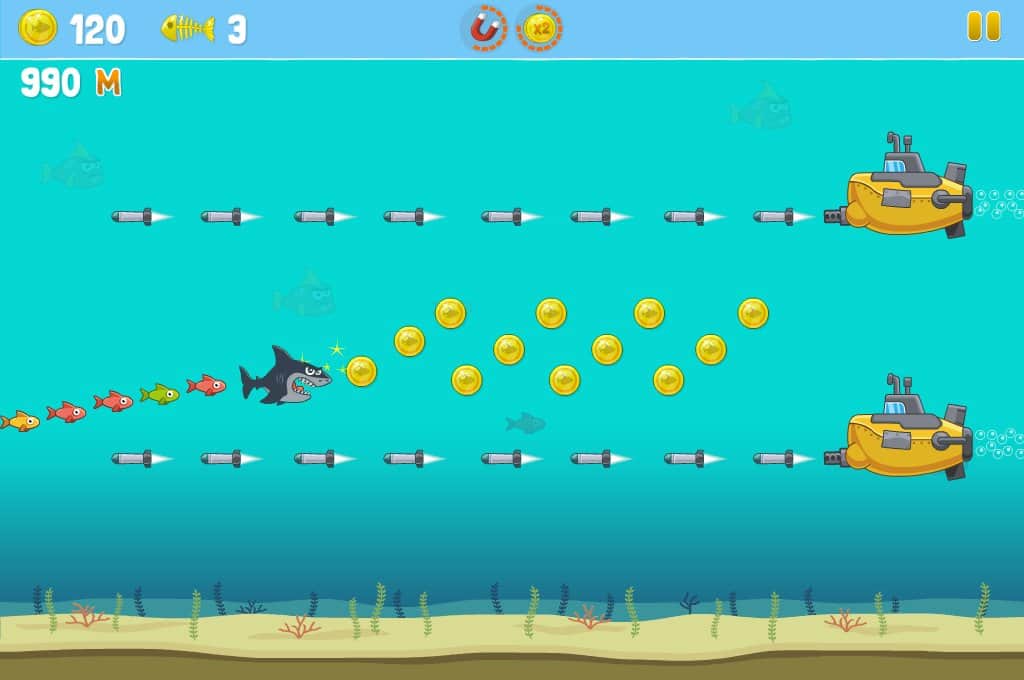 Hero Shark – управляйте голодной акулой которая плавает по океану и поедает рыбок. В этой игре вашей задачей будет пройти как можно дальше и собрать как можно больше рыбок и монет, при этом опасаясь столкновений с минами, ловушками, торпедами и лазерными лучами. Наслаждайтесь невероятными приключениями и исследуйте дно океана. По пути также не забывайте собирать многочисленные усиления и бонусы в виде ускорителя или дополнительных жизней для акулы. В игре представлено более 100 уровней, сложность которых будет постепенно увеличиваться. Играйте с друзьями и соревнуйтесь с ними за лучшие результаты.