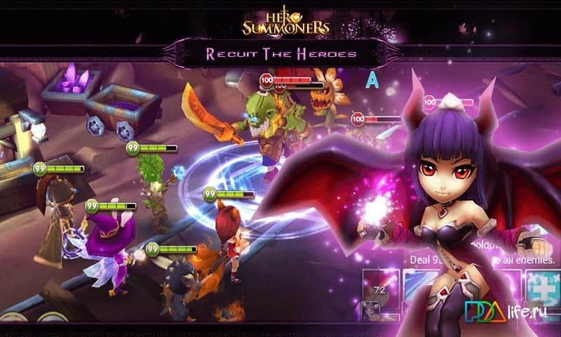 Hero Summoners – RPG на андроид, где вы отправитесь в увлекательное путешествие по мрачным мирам. Мир в котором вы живете наполнен ужасными монстрами и драконами, вашей задачей будет собрать команду воинов и очистить свои земли от врагов. Выбирайте себе членов команды, из разнообразным героев, учитывая их индивидуальные особенности и навыки. Исследуйте мрачные подземелья и сражайтесь там с монстрами. Сражайтесь со всеми врагами, вставшими у вас на пути, и применяйте для этого легендарное оружие и навыки героев. Постоянно повышайте уровень своих героев и наделяйте их различными способностями. Приобретайте броню, оружие и другие предметы, которые понадобятся вам для дальнейшего путешествия. Вступайте в безжалостные бои с другими игроками и повышайте свой рейтинг.