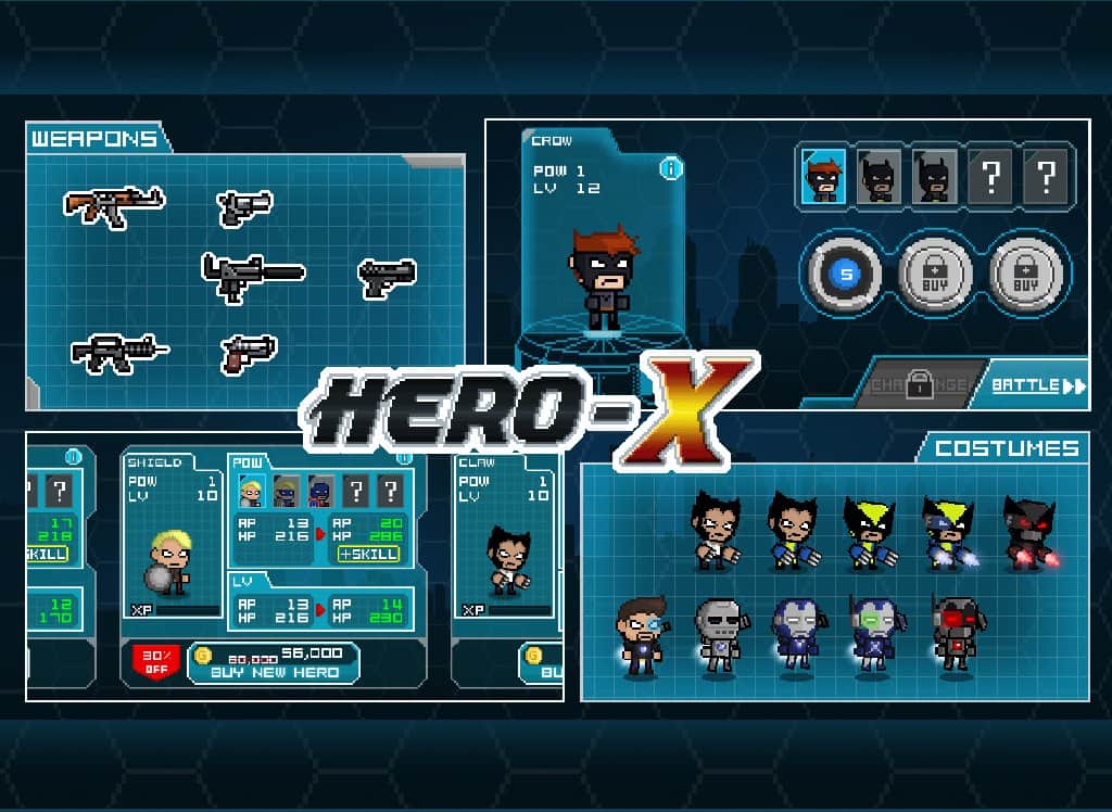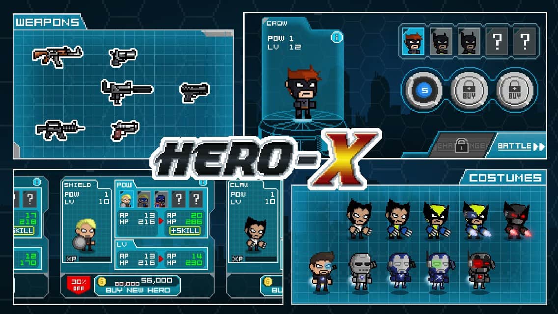 HERO-X – неизвестная армия головорезов занимают ваш город и практически все здания держат под своим контролем. Помощи ждать не от куда, вся надежда только на супер героя, который может помочь спасти город от кровожадных бандитов. Создайте своего собственного супер героя, выберите для него одежду и вперёд побеждать зло. Для каждого героя есть свои атаки, также вы можете совершать различные комбинации ударов. Которые смогут повергнуть в шок даже самого стойкого бойца.