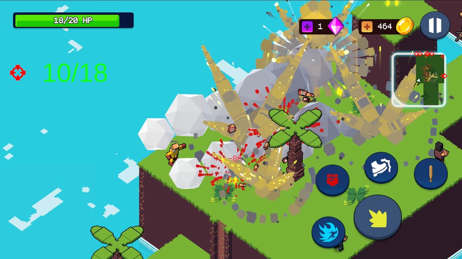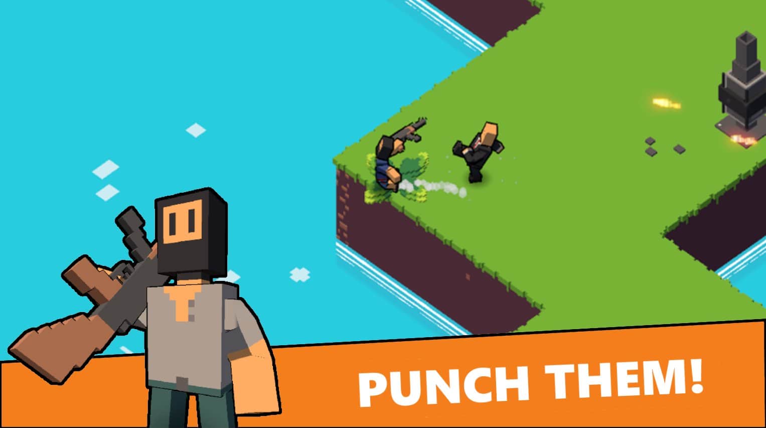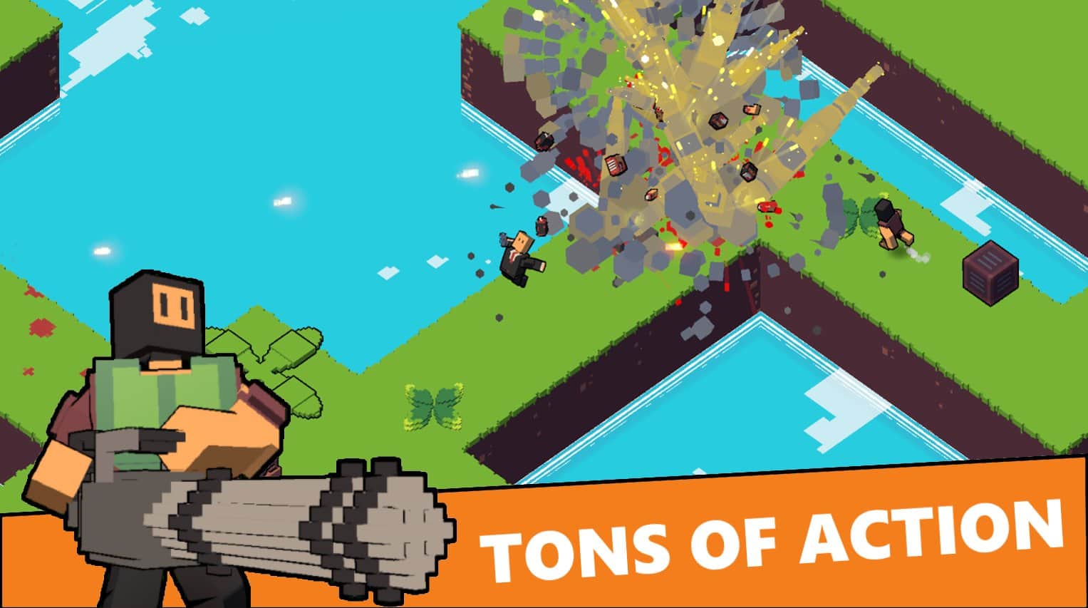 2. Геймплей, обычная аркада в которой мы должны уничтожить террористов напомнило мне задумкой игру Broforce, по мере прохождения игры будут поподатся всё более опасные противники, есть обычная костюмизация ввиде скинов из разных игр, можно так же менять оружие всё конечно же за игровую волюту которые вы будите получать при прохождении уровней, и кстати персонаж за которого мы играем не умеет плавать, также как и наши противники, кстати тут есть типо ближний бой ввиде пинка ногой, не большая разрушаемость тоже есть, но всё таки игра почти не чем не в печатляет, но не смотря на это, игра почти все свои механики умно растусовывает, так что 4/5