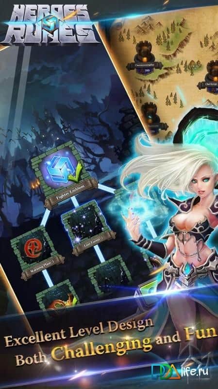 Heroes & Runes - сказочный фантазийный мир ждёт своего героя. Собираем руны ищем новых персонажей и сражаемся со своими врагами. После каждой битвы ваш уровень становится выше и вы приобретаете новые навыки владения различными приёмами или способностями, которые непременно помогут вам спасти вашу «шкуру» в боях. Тысячи различных рун и сотни героев в десятках различных рас и классов. Собрав лучших бойцов вы будете практически непобедимым. В игре более 200 различных навыков для различных персонажей. составьте правильно ваш отряд и вы обязательно выйдете победителем.