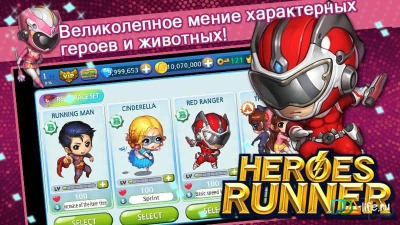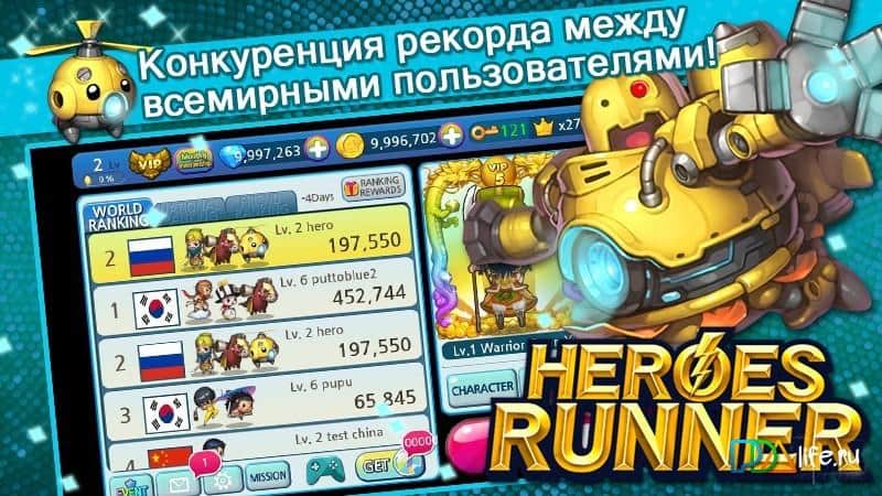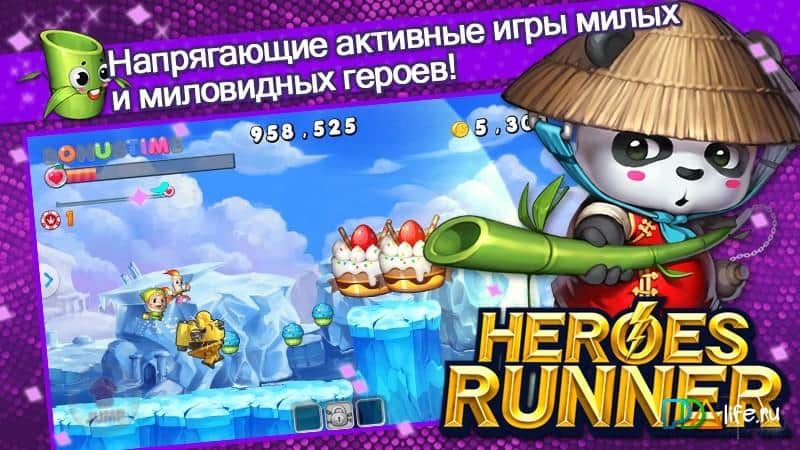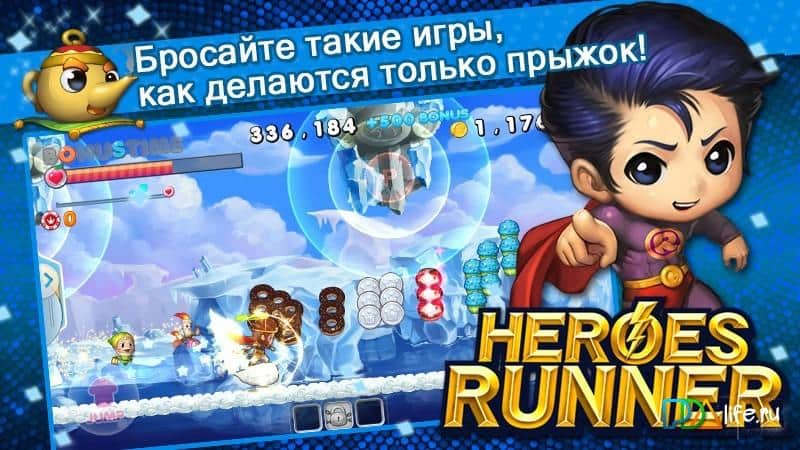Heroes runner - горизонтальный ранер с красочной графикой, забавными персонажами и простым управлением. В целом игровая механика Heroes runner копирует некогда мега-популярные аркады с игровых консолей и приставок. Ваша задача играя в роли различных героев спасти мир, а сделать это можно различными путями, но сам же геймплей заключается в преодолении множества уровней, при этом персонаж передвигается самостоятельно, вам же необходимо своевременно совершать прыжки и использовать разнообразные умения уничтожая противников. Heroes runner это неплохой тайм-киллер с понятным геймплеем который поможет вам скоротать свободное время, а всевозможные достижения, бонусы и призы заметно разнообразят геймплей.