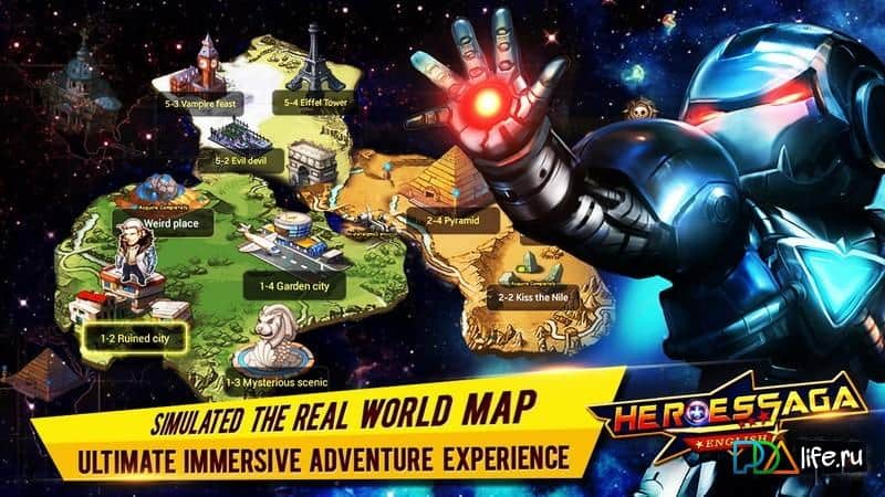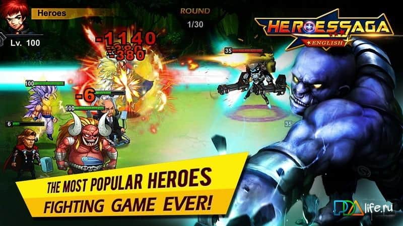 Heroes Saga – Увлекательная ролевая игра с известными героями фильмов, комиксов и анимационных фильмов. В игре яркая графика, хорошая анимация, продуманный геймплей, простое и удобное управление, с которым справится даже начинающий геймер. Вам выпал шанс спасти всё человечество от неминуемой гибели. Собираем свой геройский отряд и вперёд уничтожать всех, кто посягает на мир всего человечества.