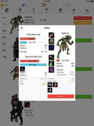 В последнее время, после выхода целого ряда хитовых проектов из жанра текстовых приключенческих игр, данный жанр все увереннее завоевывает популярность среди игроков и даже некогда "нефанаты" данного направления уже не прочь провести несколько часов за неспешными приключениями в режиме реального времени. Heroes Sim - классический представитель текстовых ролевых игр, изначально проект вышел на платформе iOS и завоевал немалую популярность и вот настало время для владельцев Андроид устройств. И так, ваша задача собрав группу героев отправиться в путешествие по сказочному миру, по пути вам предстоит сотни раз вступить в схватку и одолеть противника. Конечно же в игре присутствует широкое дерево развития, огромный выбор предметов и брони. Еще одним плюсом Heroes Sim является беспрерывный игровой процесс, геймплей продолжается даже с выключенным приложением.