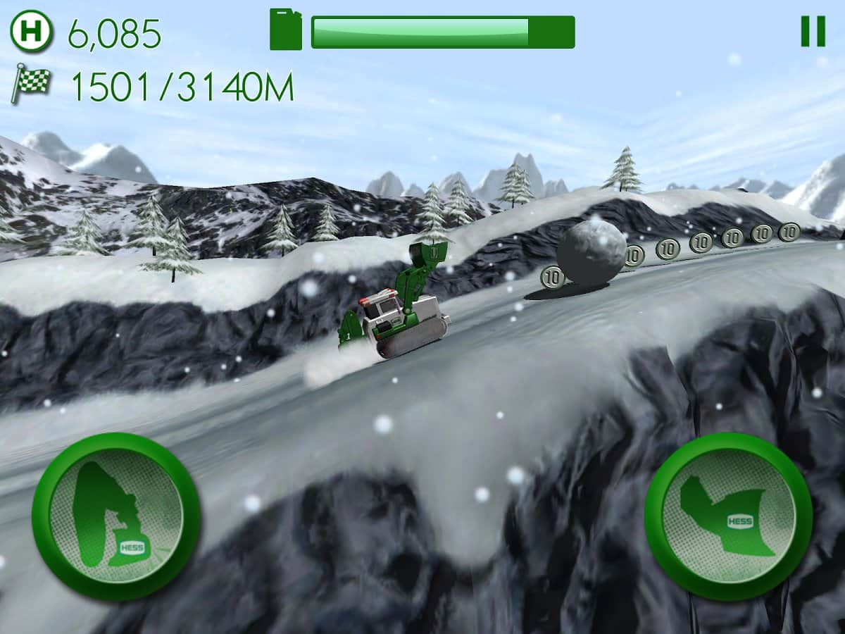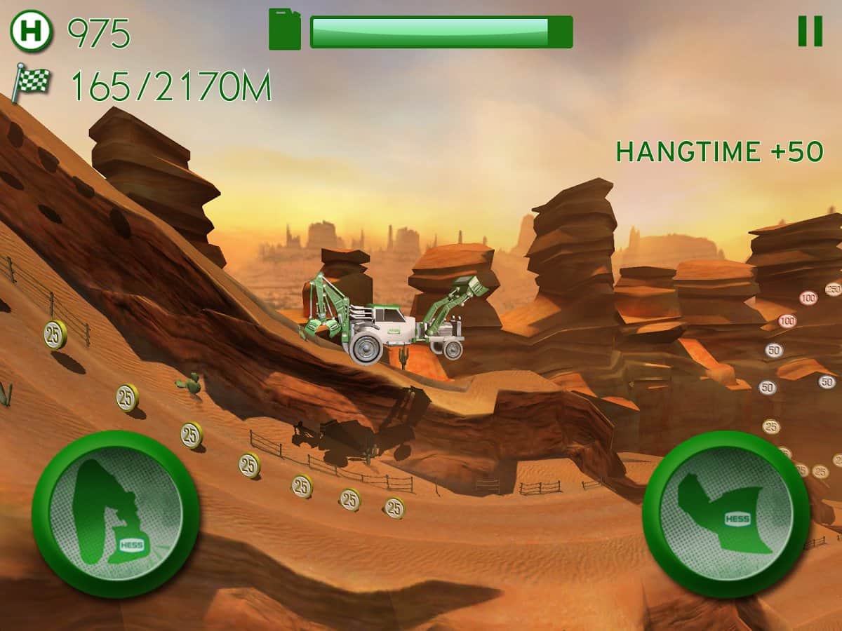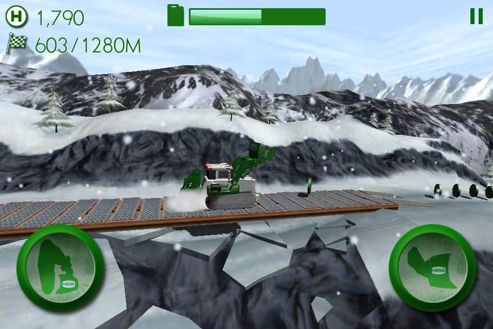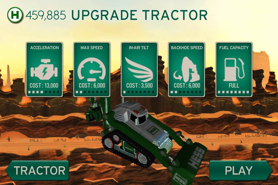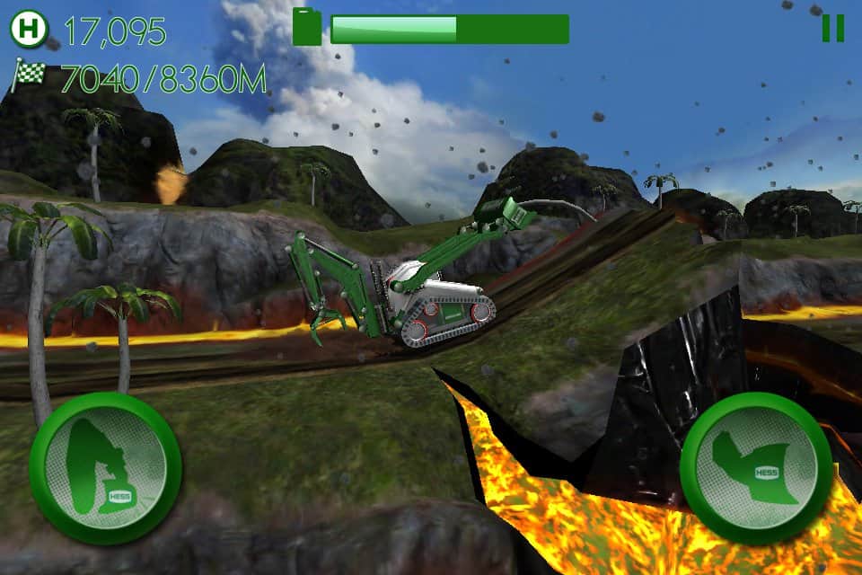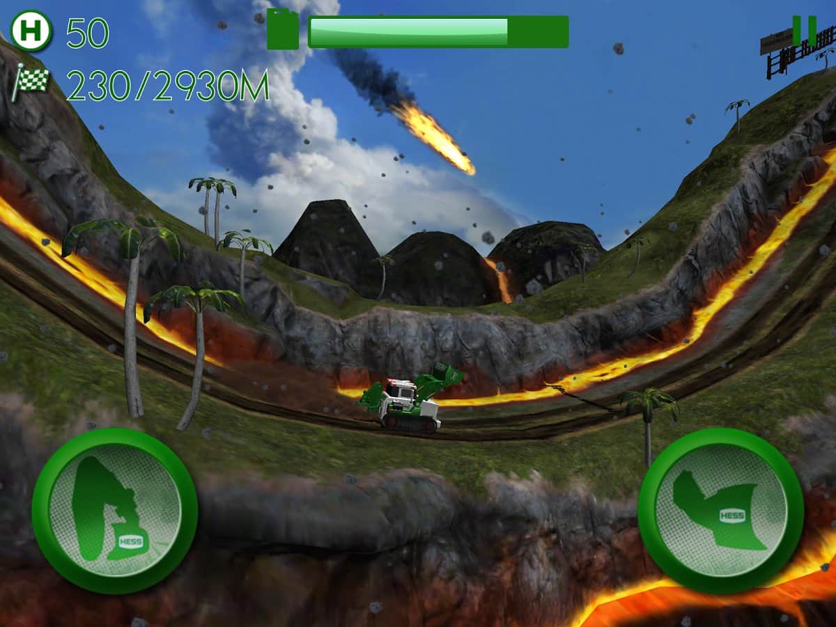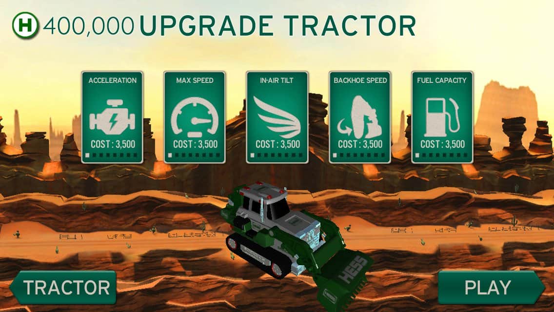 Hess Tractor Trek - игра на андроид, в которой вы будете гонять на тракторах по различным непроходимым местам планеты. Таким как ледяные горные дороги, коварные пустынные местности и тропические острова с вулканами и все это в одной игре. Гоняйте на головокружительной скорости и проделывайте различные трюки и сальто для того чтобы получить новые машины.