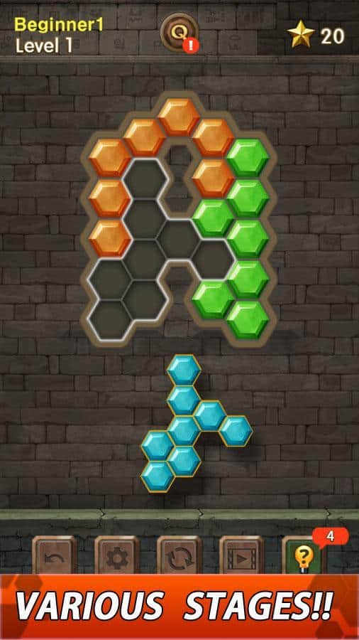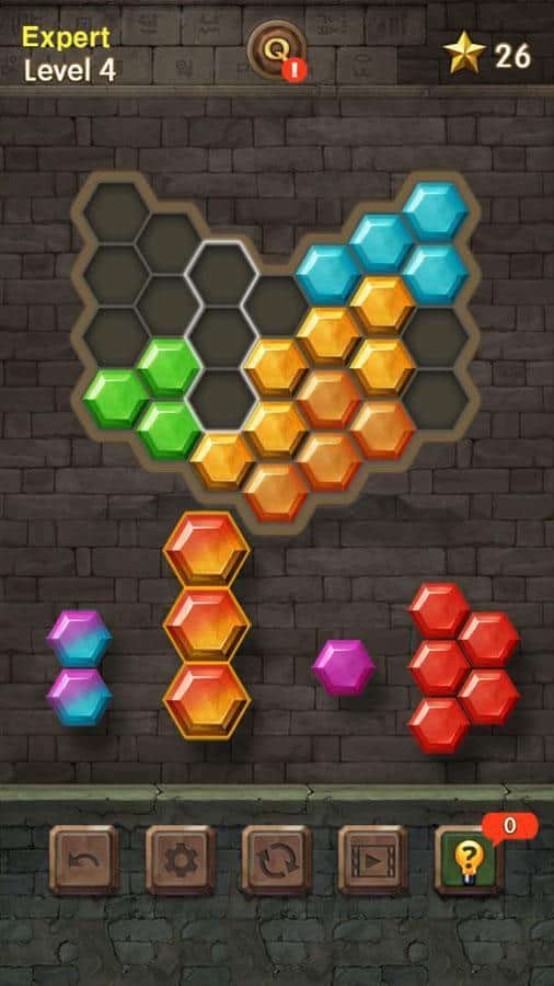 Hexa Block Quest – игра головоломка на андроид, где вы будете заполнять шестиугольниками игровое поле. В этой игре перед вами откроется поле которое вы должны заполнить различными фигурами при этом не оставить свободного места. Применяйте всю свою сообразительность и логику и расставляйте фигуры находящиеся внизу экрана на поле. Каждый новый уровень игры порадует вас новыми шестиугольными фигурами и полями для них. Прибегайте в сложных ситуациях к помощи подсказок и решайте непростые задачки. Игра порадует вас отличной яркой графикой, более 2000 неповторимыми уровнями и несколькими режимами игры.