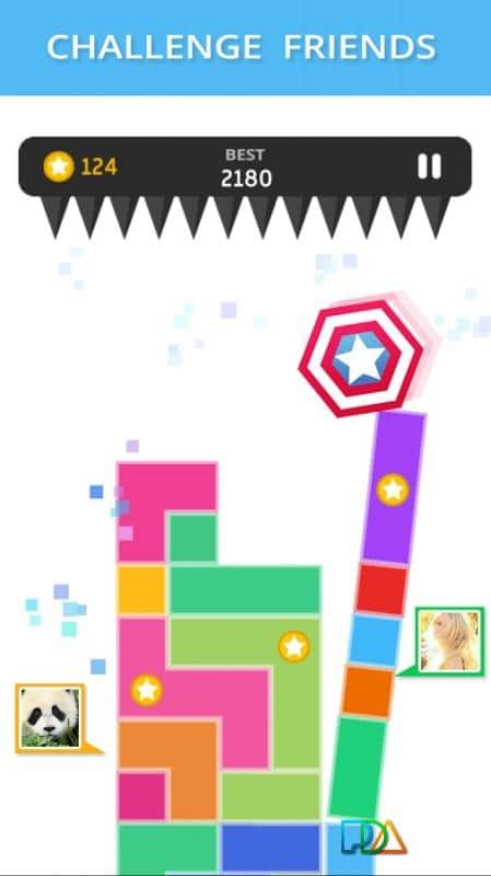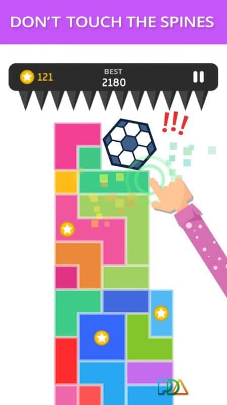 Hexagon Flip – увлекательная головоломка на андроид, где вы будете убирать многочисленные блоки с экрана. В этой игре на вашем экране окажется большое количество разноцветных блоков разного размера, вашей задачей будет убирать их, не давая шестиугольнику соприкоснуться с шипами. С каждой минутой башня из блоков будет расти и поднимать шестиугольник все выше, чтобы столкнуть его с шипами не допустите этого. Нажимайте как можно быстрее на блоки и удаляйте их, показывая на деле свою отличную реакцию и рефлексы. При этом вашей задачей будет не допустить падения шестиугольника с башни. Играйте в эту игру и добивайтесь рекордных результатов.