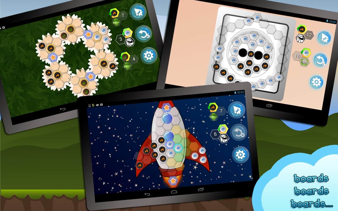 HexxagonHD - Online Board Game - Увлекательная головоломка на андроид, которая увлечет вас своей оригинальной идеей. Вас ждут интересные онлайн баталии против других игроков. Цель игры – заполнить все поле своими фишка, съедая чужие. Сложность игры заключается в том, что уровни разнообразной формы и исполнения, поэтому в некоторых из них есть труднодоступные места. Игра получила неплохую графику высокого разрешения.