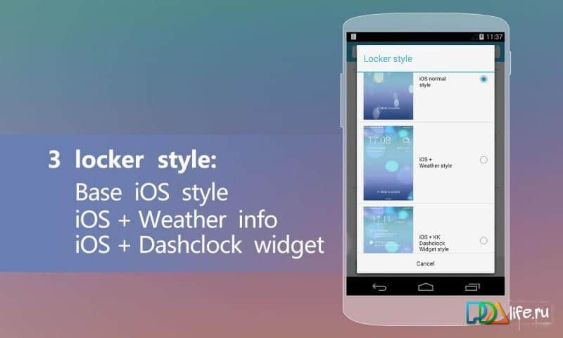 HI LockScreen - отличный Locker с 3D Parallax эффектами. Приложения выполнено на отлично и здорово выглядит как на мобильных телефонах с небольшими экранами, так и на планшетах с большой диагональю. Locker использует стиль сильно напоминающий таковой в ipad и iphone с установленной на них IOS 8. Естественно поддерживаются пользовательские обои. Присутствует поддержка установки PIN-кода для повышения безопасности вашего девайса. Быстрый запуск основных приложений из меню блокировки: камера, набор, часы, фонарик, калькулятор. Присутствует поддержка смены цветовой схемы.
