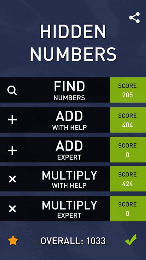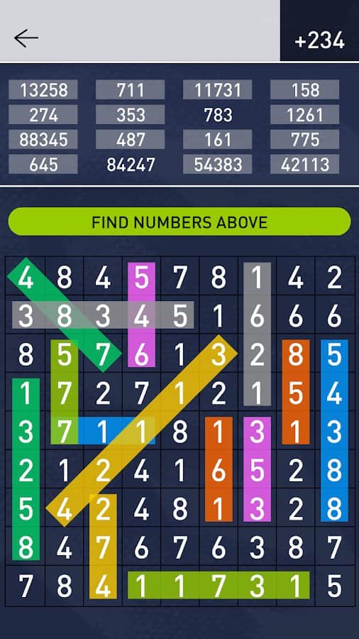 Hidden Numbers – оригинальная головоломка на андроид, где вы будете практиковать математические вычисления и проходить сложные задачи. Покажите на деле свои математические знания, делая подсчёт цифр расположенных на экране вашего телефона, чтобы собрать нужные вам числа. Тренируйте свою сообразительность и логику и составляйте в ряды нужные вам числа, чтобы по итогу получить нужное число. В игре вы найдете несколько режимов игры и сможете насладиться неспешным выполнением заданий. Решайте математические задачки и поднимайтесь все выше в таблице лидеров.