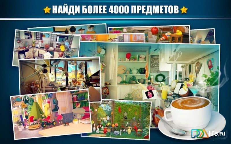 Hidden Object Games – увлекательная игра на андроид, по поиску спрятанных предметов. Эта игра порадует вас прекрасной графикой, где вы перенесетесь в многочисленные комнаты и помещения старинного дома. Исследуйте кухню с многочисленными кулинарными шедеврами и напитками, детскую комнату с игрушками, гостиную, сад и другие помещения собирая нужные вам предметы. Наслаждайтесь приятной атмосферой игры с ее незабываемыми локациями и невероятными предметами. Получайте по три звезды на каждом уровне и переходите на следующий. Прибегайте к помощи подсказок в сложных ситуациях. Включайте текстовый режим для изучения предметов, который отлично подойдет для детей.