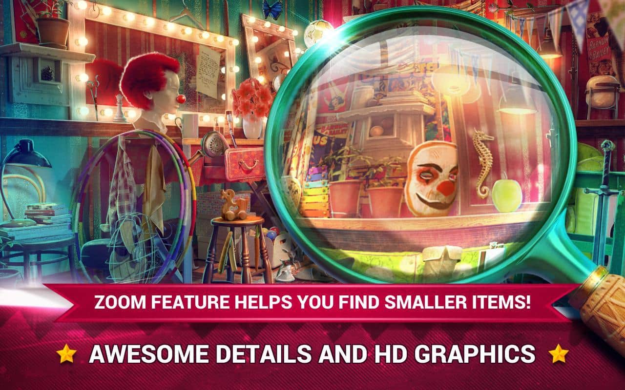 Hidden Objects – Circus – захватывающая игра по поиску спрятанных предметов. Если вы любите игры такого жанра, то эта игра создана для вас. Установите ее в свой телефон или планшет и наслаждайтесь отличной графикой и прекрасным музыкальным сопровождением. В этой игре вы познакомитесь с Чарлием, клоуном которому будете помогать искать предметы и раскрывать все тайны цирка. Перед вами откроются разнообразные локации с многочисленными предметами для поиска. Используйте функцию зум и увеличивайте или отдаляйте картинку, чтобы быстрее найти все нужные вам предметы. Играйте в эту игру в любое свободное время и получайте максимум удовольствия.