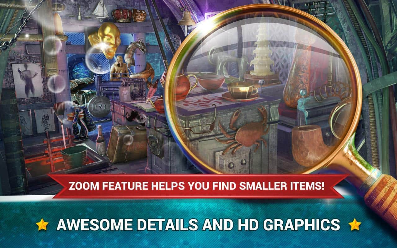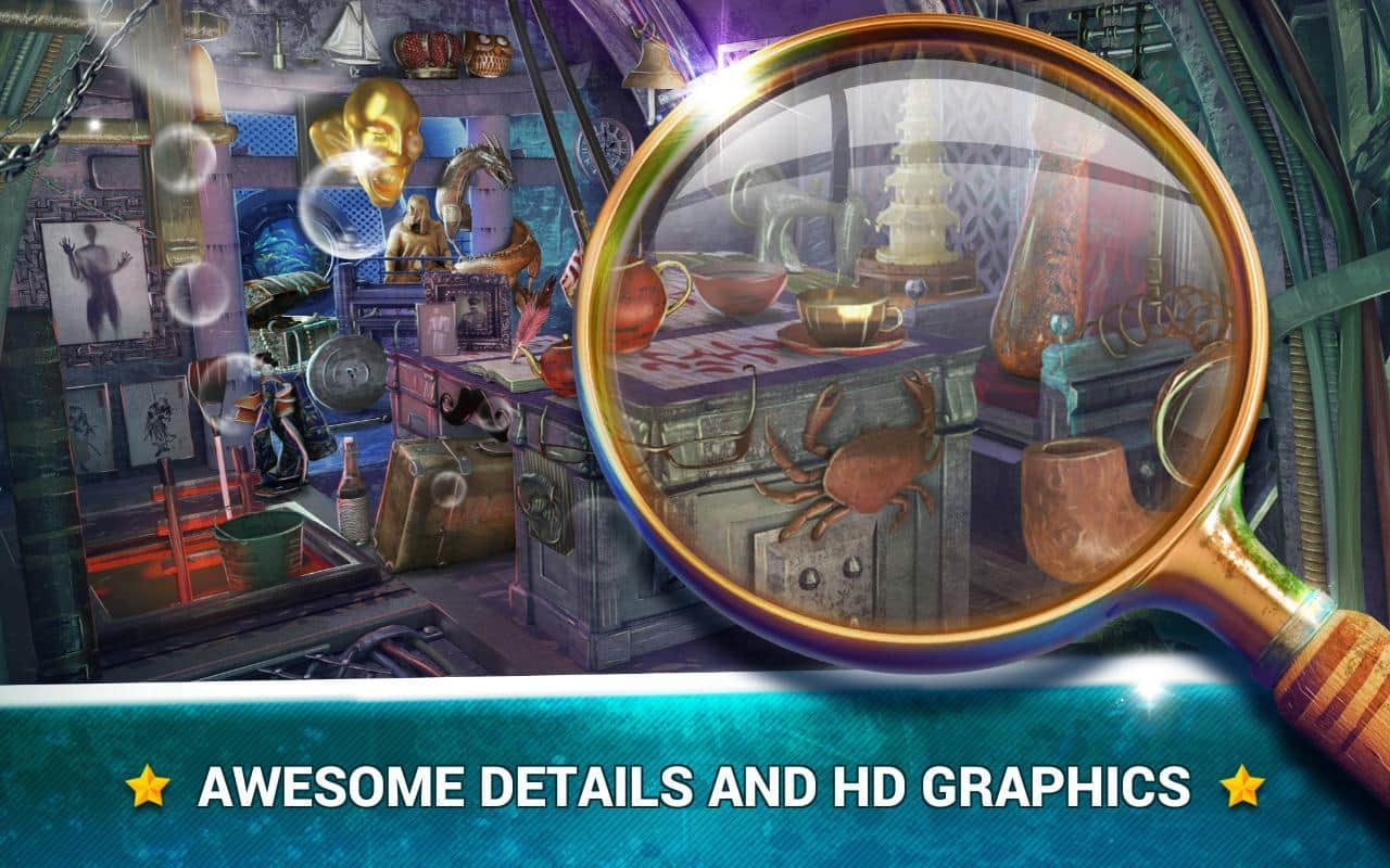 Hidden Objects Submarine Monster – Seek and Find – увлекательная игра на андроид, где вы будете искать различные предметы. В этой игре вы станете исследователем и первооткрывателем, который будет искать сокровища на морском дне. Управляйте подводной лодкой и погружайтесь в морские глубины стараясь найти сокровища и другие ценные предметы. Исследуйте многочисленные и разнообразные локации, ища нужные вам предметы, а также используйте карты и навигацию, чтобы отыскать затонувшие корабли. Играйте в эту игру и наслаждайтесь отличной графикой, более 2000 предметами и многочисленными подсказками.