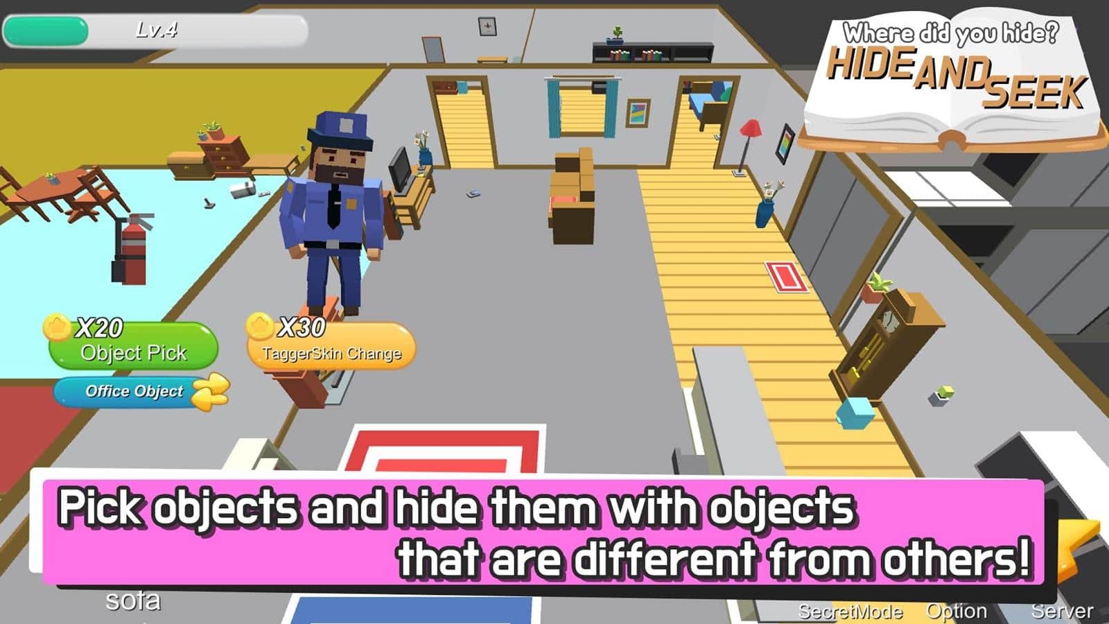 Не допусти проигрыша в Hide.io, найди все скрытые предметы и выйди в лидеры среди игроков всего мира. Каждый помнит любимую игру детства – прятки, именно они в основе турниров в этой игре. Обязательно нужно надежно спрятать предмет, после чего игроки в ограниченное время должны найти спрятанный предмет. Кто не успевает, тот выходит из игры и так продолжается до момента, пока не останется один победитель. Верни детскую игру, участвуй в чемпионатах мира по пряткам, а также становись организатором собственных турниров!