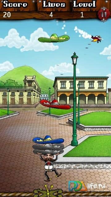 High Hats - затягивающая игра с красивой графикой и интересной озвучкой, в которой нужно ловить шляпы падающие с верху. Сложность заключается в том что шляпы не падают прямиком в низ а опускаются плавно со стороны в сторону. Да и те шляпы которые на голове мексиканца имеют свою инерцию вслед за движение человечка. И не забываем собирать бонусы!