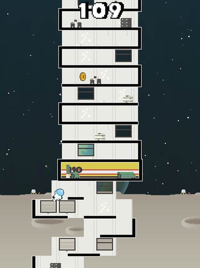 Студия разработчик Kumobius хорошо известна поклонникам аркад благодаря таким проектам как Time Surfer, Bean Dreams и конечно же мега хитом под названием Duet. Отличительными чертами этих игр является простой, но при этом на редкость увлекательный геймплей, простое управление и отличная графика выполненная в оригинальном стиле. В свойе новой игре разработчики из Kumobius решили несколько отойти от привычных норм и подарили нам аркадный джампер в пиксельном стиле. Игровая механика проста и понятна, ваша задача отталкиваясь от стен постараться забраться как можно выше, при этом уровни в игре будут как чито вертикального расположения так и горизонтального, с поступенчатым возвышением. Сложность игры заключается в том что локации не симметричные и спрогнозировать следующее действие невозможно, кажды раз придется действовать по обстановки.