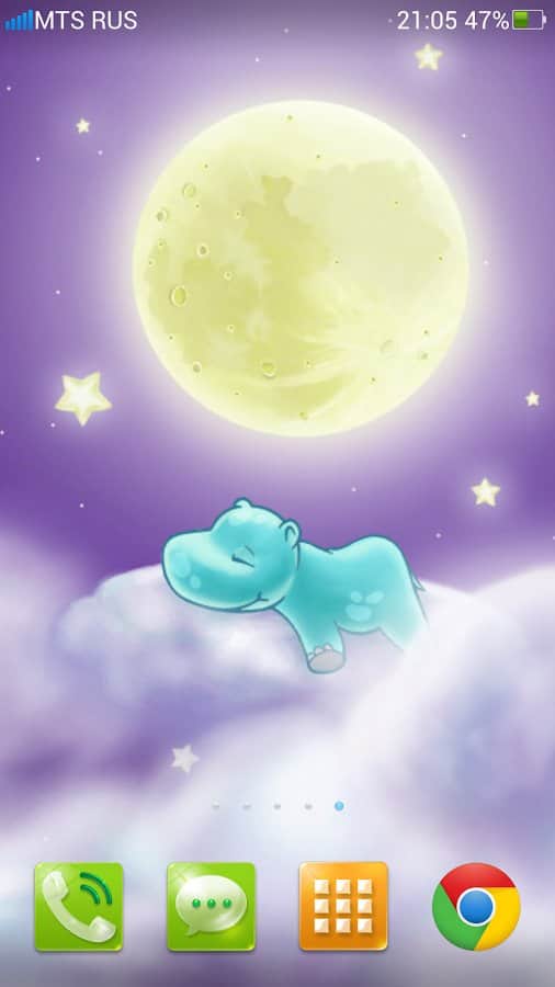 Hippo and the Moon – сказочные живые обои на андроид, благодаря которым на вашем рабочем столе появиться сонный бегемотик. Установите эти обои в свой телефон или планшет и наслаждайтесь видом сладко спящего бегемотика. Эти обои отображают на экране текущие фазы луны такие как: новолунье, месяц, четверть, нарастающая Луна и полнолунье. Также с помощью настроек вы сможете отобразить любую фазу луны в независимости от той как иметься в данный момент. Меняйте количество и скорость движения облаков и любуйтесь приятной картинкой и плавной анимацией. Установка не займет у вас много времени.