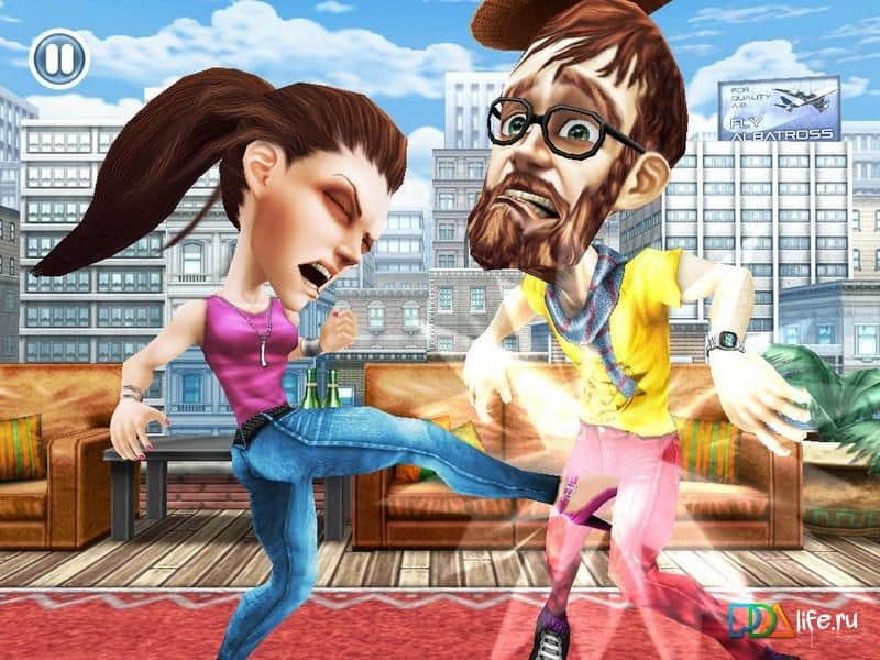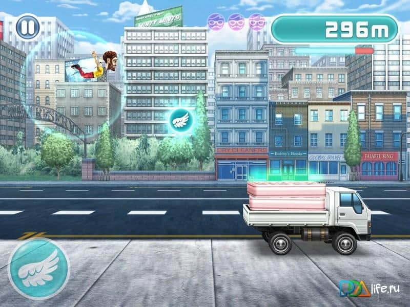 Hipster Smackdown - веселый раннер теперь и на андроид устройствах, в котором вам предстоит управлять летающим парнем. Этот парень, какой-то не везучий его все бьют, любимая девушка, друзья, прохожий на улицах и даже собаки. После сильных ударов, за которые насчитывают очки, он поднимается в небо. Летайте, катайтесь на велосипеде и на скейте, а также поднимайтесь в небо с помощью воздушных шариков и птиц. Проделывайте различные трюки и будьте аккуратны чтобы не столкнутся с различными препятствиями встающих у вас на пути. Вас ждут 48 уровней в 3 различных мирах и забавный анимированный герой, которого можно одевать в смешные костюмы.