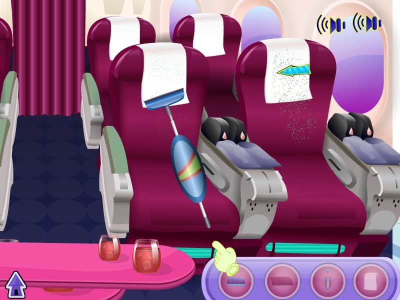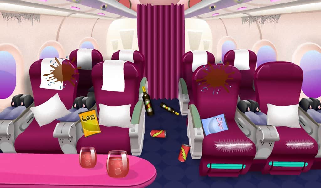 Holiday Airplane Cleaning – игра для девочек, в которой они будут помогать команде уборщиков убирать самолет после рейса. Мы все любим путешествовать и бывать в новых странах, а путешествовать лучше всего на самолете. Но мы не когда не задумывались о том, сколько мусора оставляем после себя в самолете, и теперь настало время взять уборку в свои руки и подготовить самолет к дальнейшему рейсу. Собирайте мусор, чистите полы, шторки, сиденья и окна, а также пропылесосьте коврики и очистите пятна. Самолет после ваше работы должен быть чистым, так что не забудьте убраться во всех местах, чтобы пассажирам было приятно лететь в этом самолете.