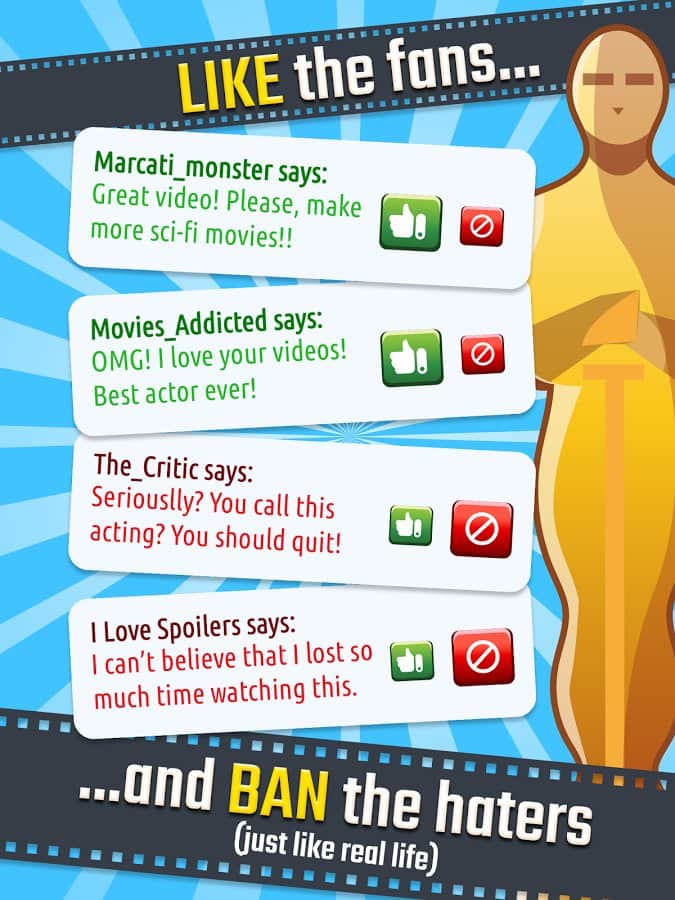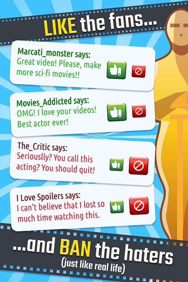 Hollywood Billionaire – игра на андроид, где вы возьмете под свой контроль популярную киностудию. Снимайте самые топовые блокбастеры, приглашайте для сьемок самых известных актеров и поднимите рейтинги своей киностудии до небес. Нанимайте на работу самых известных сценаристов и снимайте фильмы различных жанров, которые будут достойны многочисленных наград. Получайте восторженные отзывы критиков, участвуйте в многочисленных акциях и мероприятиях и получайте сказочные гонорары. Находите новых звезд и снимайте их в своих фильмах. Нажимайте как можно чаще на свою кинокамеру и снимайте интересные фильмы и сериалы, которые понравятся зрителям.
