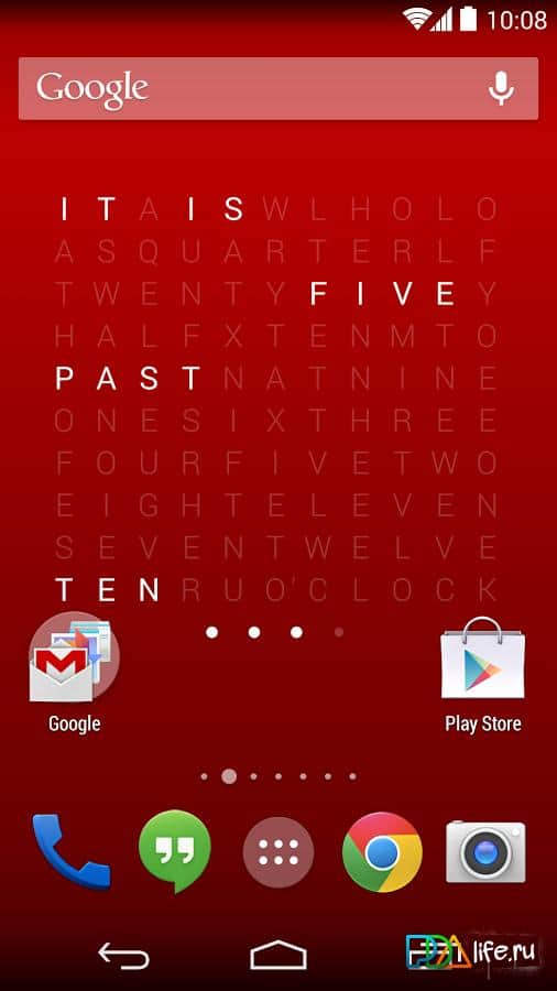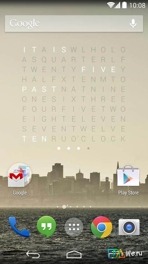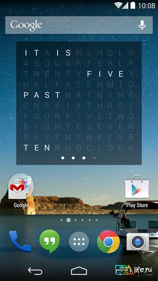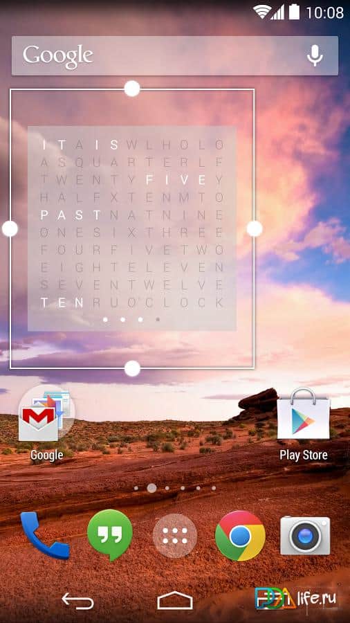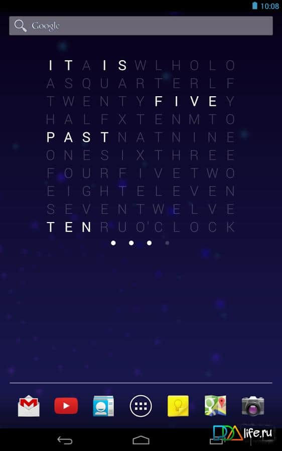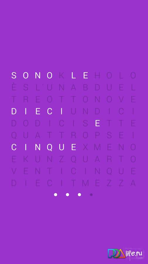Holo Text Clock - отличный многофункциональный виджет часов для андроид. Здесь и часы, и живые обои, а также скринсейвер режима Daydream. Виджет весьма необычен - на экране сетка букв, некоторые из них подсвечены ярче и создают словесное отображение текущего времени. Это выражение сменяется каждые 5 минут, а чтобы узнать точное время, нужно к словесному прибавить количество точек внизу экрана, это дополнительные минуты. Сам размер виджета меняется в настройках и его можно поместить на рабочий стол или же использовать как локскрин. Также кликнув по нему, можно поставить будильник. К сожалению, русский язык пока не поддерживается, но все впереди, да и текущий английский весьма понятен. А кому захочется , еще можно установить - немецкий, французский, испанский, итальянский и голландский. Ну и в дополнение - виджет включает в себя 7 цветовых решений - темная, светлая, фиолетовая, зеленая, синяя, оранжевая и красная.
