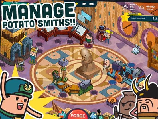 Holy Potatoes! A Weapon Shop?! – симулятор для IOS, где вы будете выступать в роли «оружейного барона». В этой игре вашей задачей будет создавать и продавать оружие различным героям. В игре вы будете управлять человечками-картофелинами которые будут создавать оружие и расширять и развивать свой бизнес. Создавайте новые виды оружия и ищите нужные вам для этого материалы и заклинания. Всего вы сможете в игре создавать около 200 видов оружия, а также, чтобы работа шла быстрее нанимать помощников и создавать еще больше оружия.