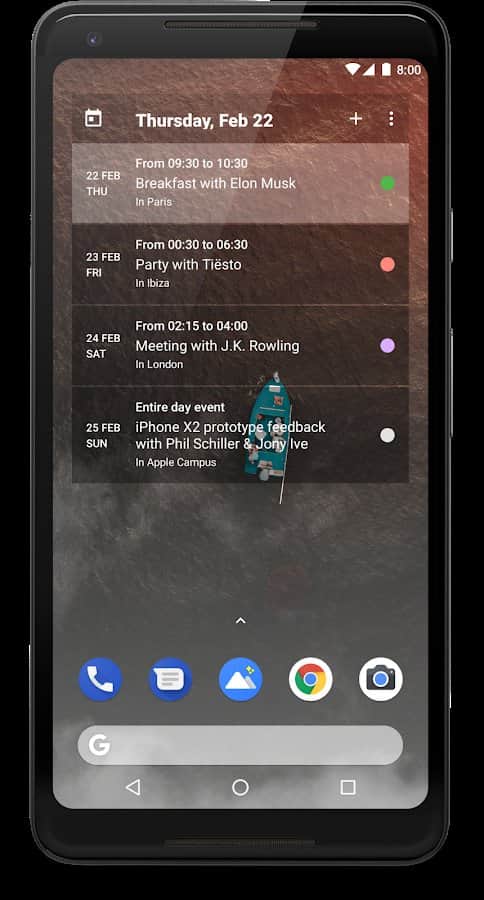 Home Agenda - Calendar Widget создан для тех, кто ценит свое время и часто пользуется календарем для просмотра определенной даты, установки заметок и различных напоминаний. Этот красивый и яркий виджет с великолепным дизайном поможет вам одним касанием открыть нужное приложение за мгновение. Он будет всегда у вас на глазах при разблокировки экрана смартфона и станет незаменимой частью рабочего стола. Огромным преимуществом является то, что обновление иконки происходит вместе с приложением "Календарь" за счёт их синхронизации.