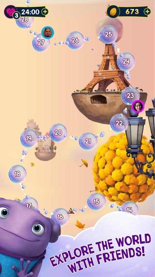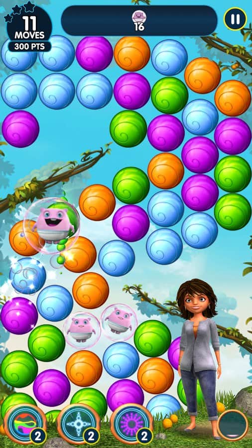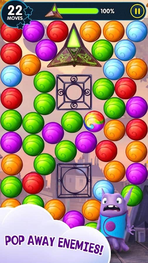 Home: Boov Pop! – игра головоломка, сделанная по одноименному мультфильму с забавными героями. Окунитесь с головой в этот увлекательный мир, где все в нем устроено на законе гравитации. В этой игре вы вместе с главными героями будете лопать шары одинакового цвета, составляя их в ряд по три и более. Чем больше и длиннее будет цепочка, тем больше взрывов вы получите и насладитесь красивой анимацией. Применяйте дополнительные бонусы, которые помогут вам менять цвет шаров или лопать шары одного цвета и получать больше очков.