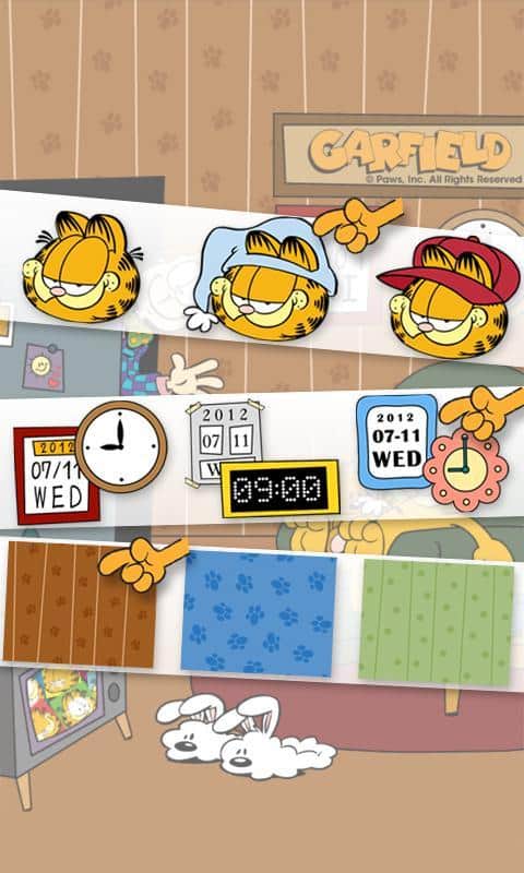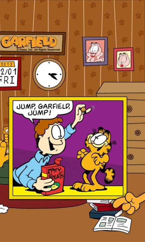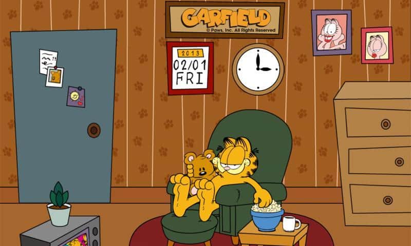 - При перелистывании экрана, из двери будут выглядывать друзья Гарфилда.