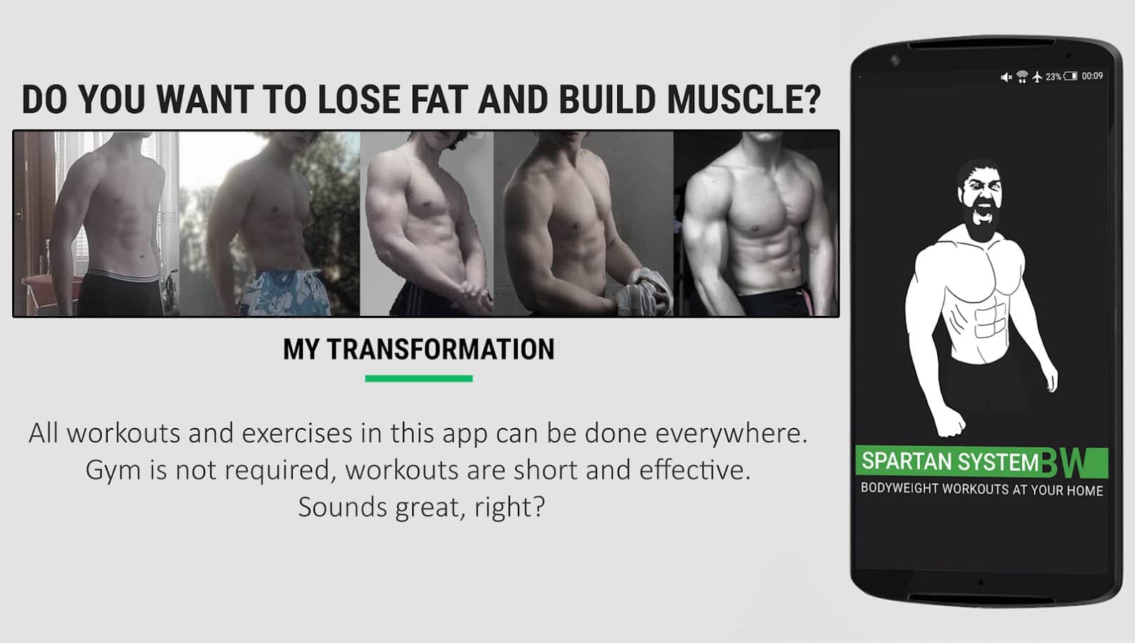 Home Workout MMA Spartan Pro - Хотите быть таким же здоровым и сильным как настоящий спартанец, или же вы просто пересмотрели фильмов и хотите стать таким же накачанным? С помощью этого приложения стать сильным и большим вполне реально! Все что нужно это задать себе строгий график и придерживаться его всегда. Вы сможете не только вести свой график но и смотреть какие именно упражнения нужно делать и даже как их правильно делать.