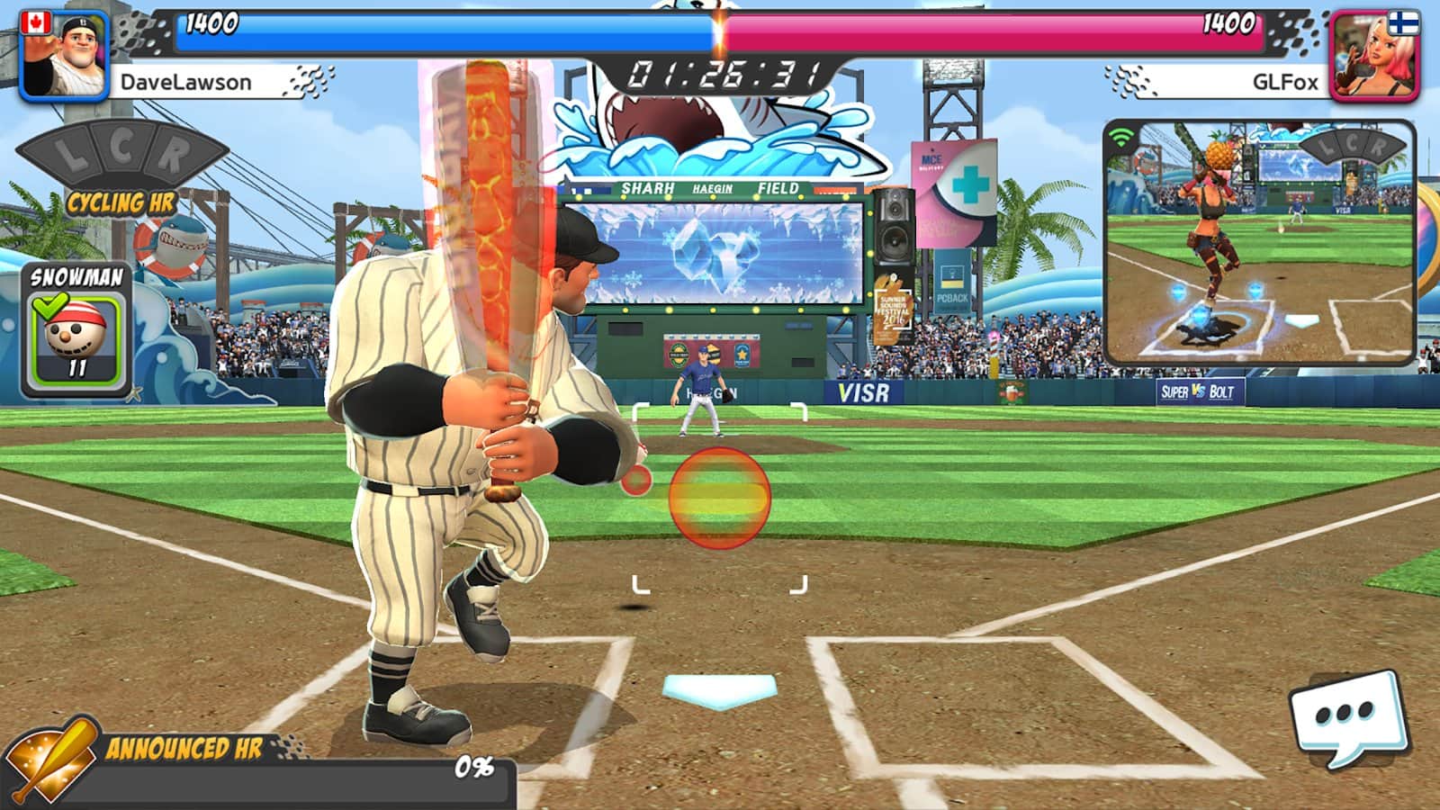 Homerun Clash - Приготовьтесь отбивать самые сильные атаки мячами от соперников и быстро убегать, пока осталось свободное время! Хоумран-дерби считается не самым легким видом спорта, так как в нем постоянно необходимо быстро бегать, метко целиться, удачно отбивать мячи битой и в целом ориентироваться в пространстве игры. Совершите наибольшее количество хоумранов за 90 секунд и выиграйте! Экспериментируйте с видом игры в различных режимах: испытания, один на один, королевская битва, история, турнирный матч, командный бой, чемпионат и прочее.