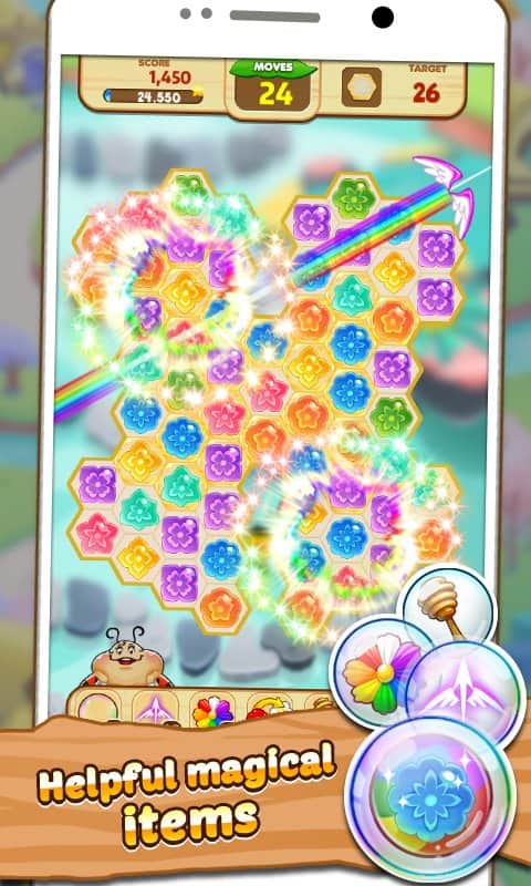 Honeyday Blitz 2 – помогите маленькой пчелке собрать как можно больше меда в этой игре из жанра «три в ряд». Начните свое путешествие по волшебной стране, состоящей из разноцветных цветов, которые вам предстоит собирать в ряд и тем самым получать в награду мед. Составляйте одинаковые цветы по горизонтали, вертикали и диагонали, из-за того что ячейки с цветами имеют форму сот и соприкасаться с другими ячейками шестью сторонами. Если вы составите более трех цветов в ряд, то получите ценные бонусы, которые помогут вам в дальнейшем. Пройдите более 155 уровней и получите разнообразные усиления и поднимитесь на самый верх таблицы лидеров и достижений.