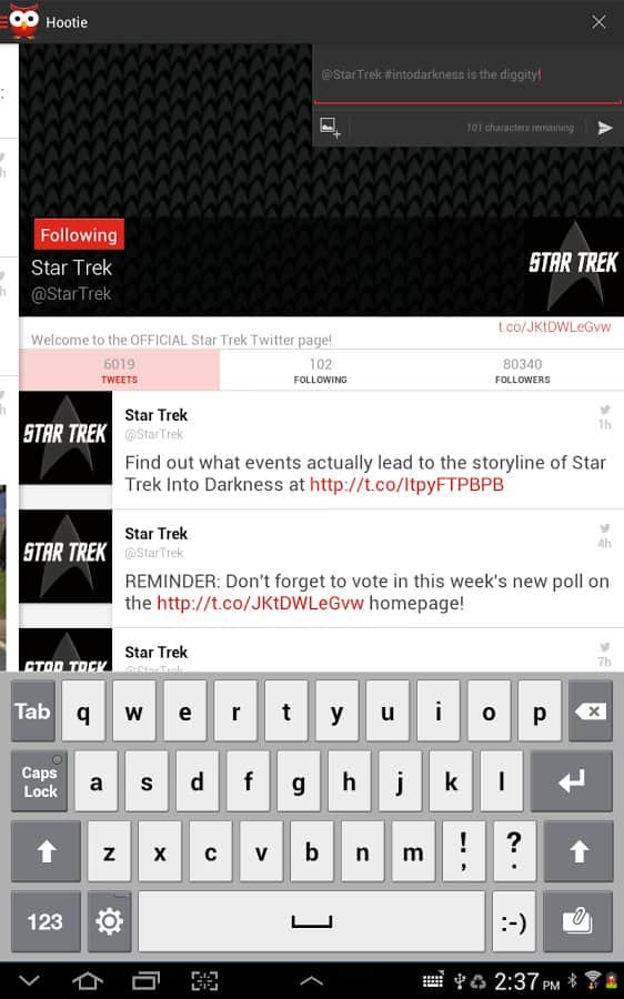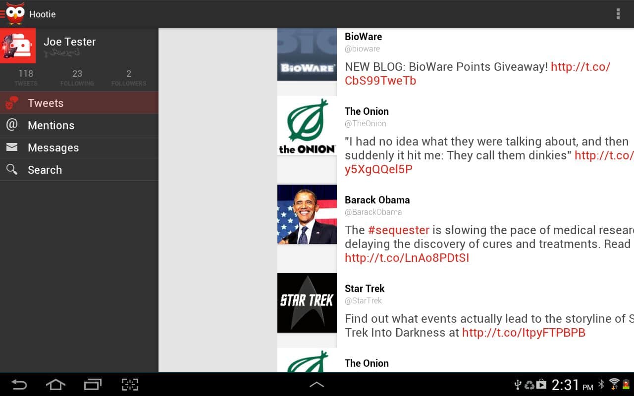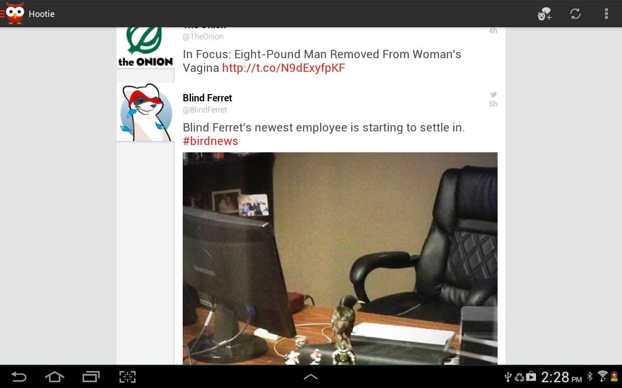 Hootie Twitter является новым клиентом, который позволяет получить доступ к Twitter на вашем андроид устройстве. Клиент может отличиться плавной прокруткой ленты уникальной анимацией и удобной навигацией по программе.