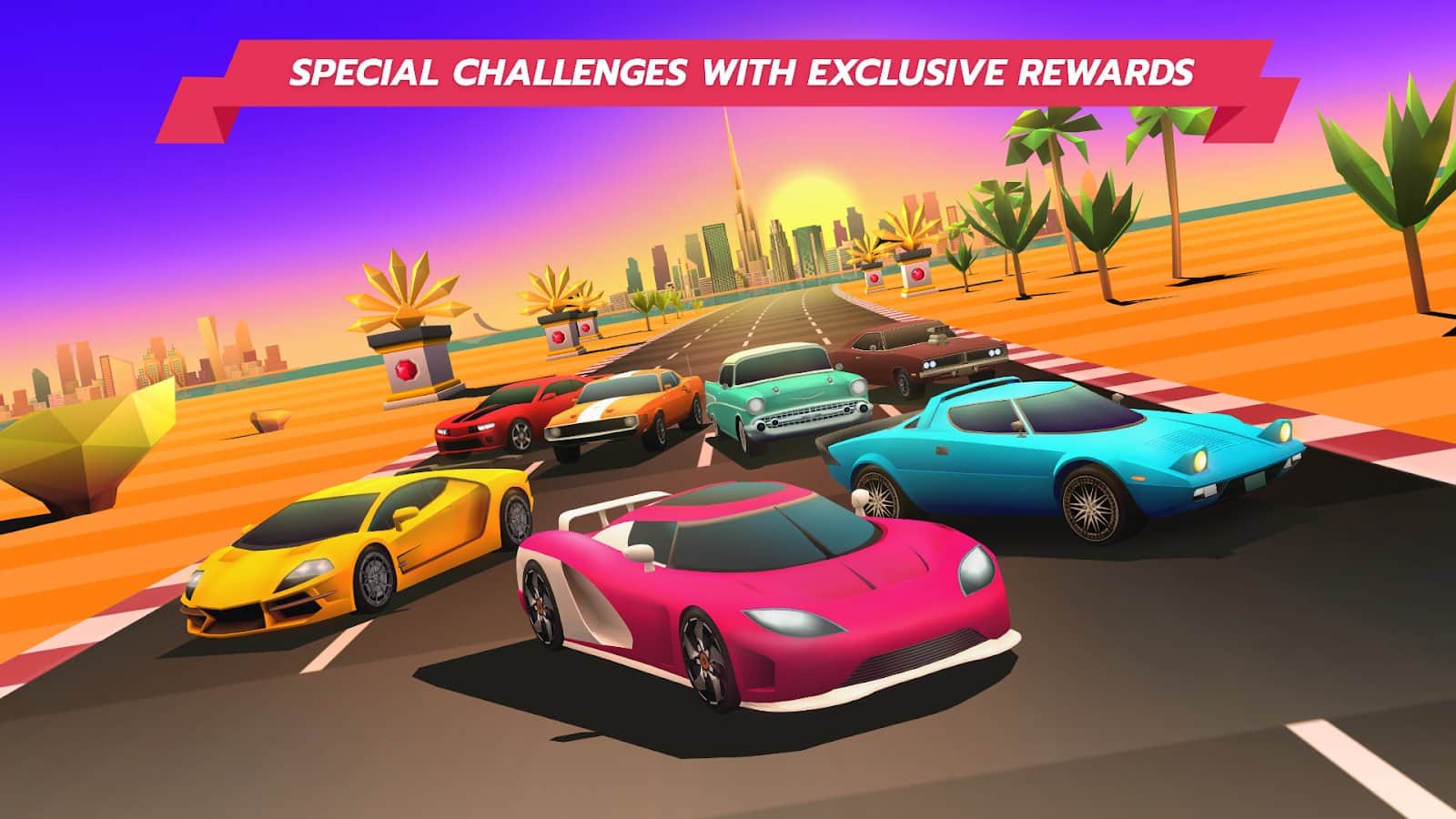 Horizon Chase - World Tour - превосходные аркадные гонки, идея которых взята из хитов конца 80-х и начала 90-х годов: Lotus Turbo Challenge, Top Gear (SNES), Rush, и других. Аркадный геймплей сильно похож на тот который был пару десятков лет назад. Даже графика повторяет схожий дизайн и атмосферу уровней, с поправкой на новые графические возможности современных девайсов. Игра будто переносит вас в эпоху 8-ми и 16-ти битных приставок. Передавая неповторимый стиль ретро в новой яркой обёртке. В игре представлены 16 автомобилей, 8 кубков и 73 города. Победите во всех заездах и станьте лучшими гонщиком.