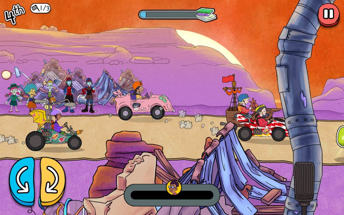 Horrid Henry Krazy Karts - игра в которой вы откроете для себя безумный мир гонок с Ужасным Генри и его друзьями. Стартуйте на своих картах и давите на педаль газа, чтобы прыгать через препятствия и проноситься сквозь неизведанные территории. Но будьте осторожны, ведь конкуренты не спят и готовы навредить вашему карту любым удобным способом. Чтобы быть лучшим, необходимо уметь не только быстро ездить, но и устраивать веселые розыгрыши своим оппонентам. Вы же не хотите оставаться без бонусов и позорно покидать трассу. И не забудьте посетить мастерскую Генри, чтобы создать свою мечту на четырех колесах. Выберите свой стиль и дизайн, добавьте классные наклейки и сумасшедшие эффекты окраски, чтобы покорить всех своих оппонентов на трассе.