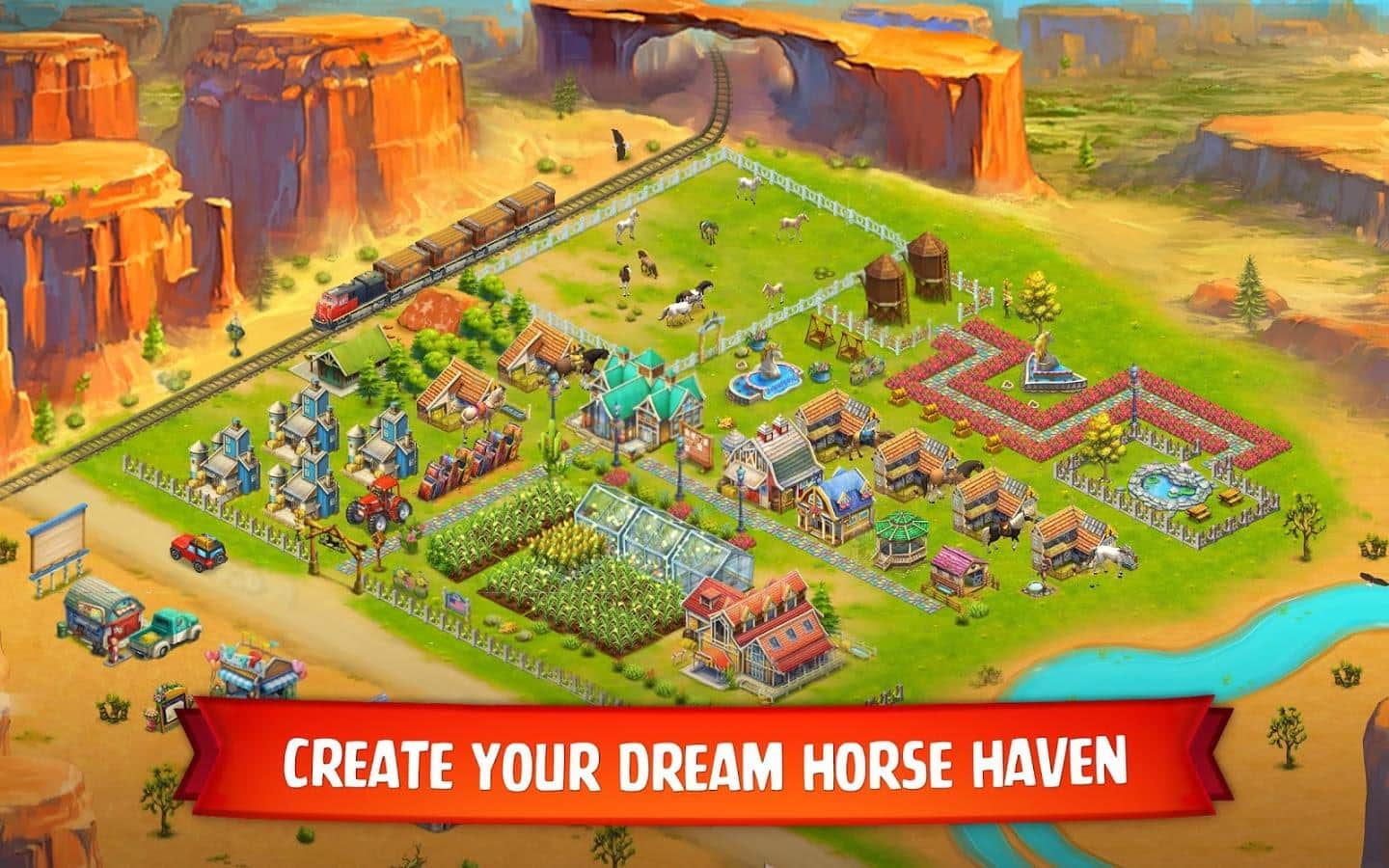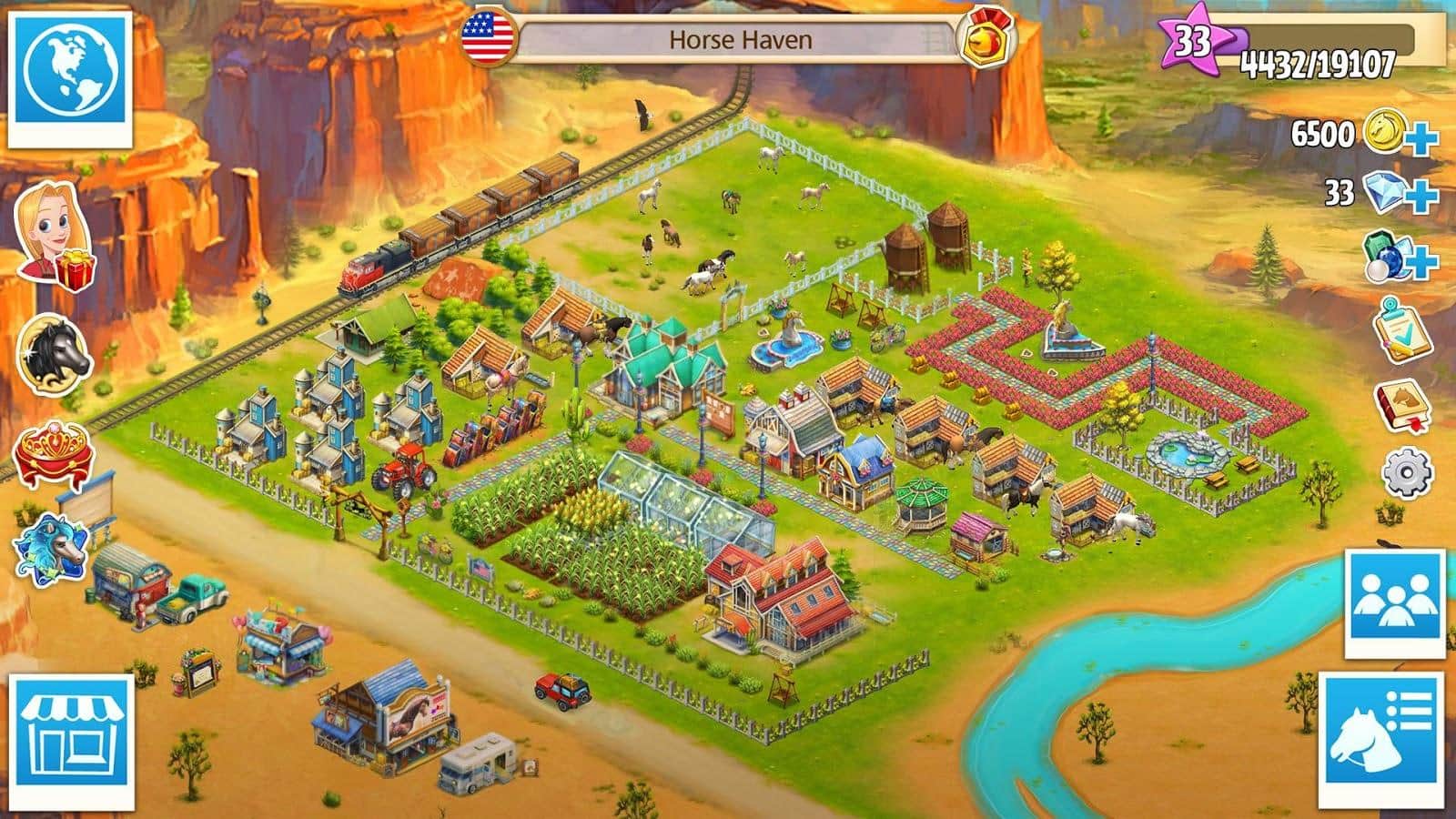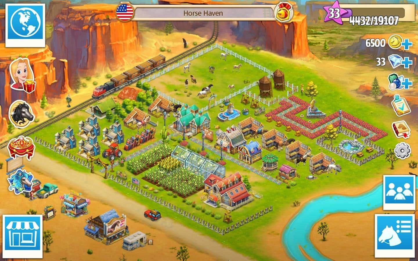 Horse Haven World Adventures - Эта игра поможет вам сделать рай для лошадей в любой точке земного шара. Управляйте идеальной лошадиной фермой и вырастите в ней идеального четвероного друга, с которым вы сможете принять участие на скачках с препятствиями и др. занятиях. Создайте хозяйство мирового масштаба: ранчо в США, конюшню во Франции… Прославьтесь на весь мир! Для этого разводите, собирайте, продавайте и дрессируйте более 90 лошадей. Балуйте их, кормите, чистите и вырастите будущих чемпионов. А вместе с чемпионами примите участие в гонках по изумительно экзотическим декорациям. Корм для своих питомцев выращивайте прямо на ферме, для этого стройте и улучшайте свои конюшни и кормодробилки, чтобы превратить свою конюшню в рай для лошадей. Не забудьте украшать свою ферму очаровательными предметами декора, чтобы поднять настроение своим подопечных. Найдите таких же любителей лошадей и соревнуйся с ними, чтобы выяснить, кто же лучше!