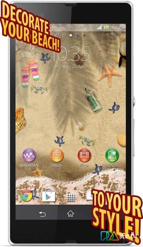 Hot Beach Live Wallpaper – живые обои на ваши телефоны и планшеты которые перенесут вас на морской пляж. Если вы мечтаете о лете и отдыхе на море то эти обои подойдут вам, установив их, вы сможет наблюдать за тем как небольшие волны накатываются на пляж, теплый ветерок шелестит листьями пальм, а солнышко греет вас своими лучами. Наблюдайте за всей этой умиротворяющей картиной и с помощью настроек располагайте на пляже черепашек, крабов, пляжные принадлежности и различные другие детали. Также устанавливайте соответствие с часами и наблюдайте, как солнце будет садиться, и вставать в реальном времени.