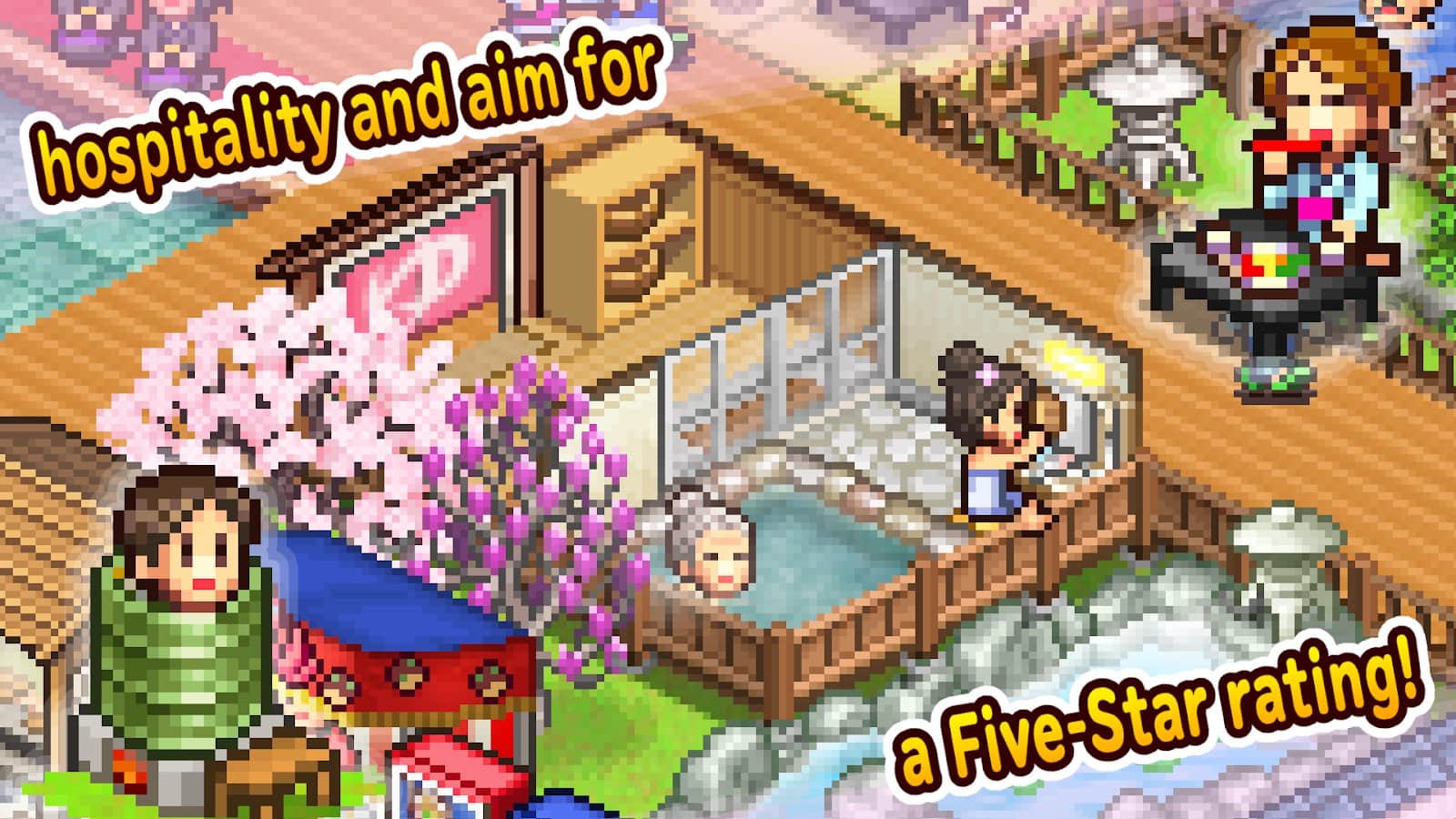 Изучите славный, гармоничный, теплый народ японцев и их особенность - ванные любого вида: для всего тела, ног, рук, котельные ванные, ванные на открытом воздухе и многие другие вместе с игрой Hot Springs Story2! Постройте с нуля здание со всеми удобствами: украшайте его растениями или прочими украшениями, создавайте магазины, настольные игры и зоны для отдыха, предлагайте разные горячие источники и станьте самым популярным курортом в мире. Инвестируйте в наиболее популярные туристические места, чтоб они делали вам рекламу и у вас было больше посетителей. Опробуйте этот рай для людей сами!
