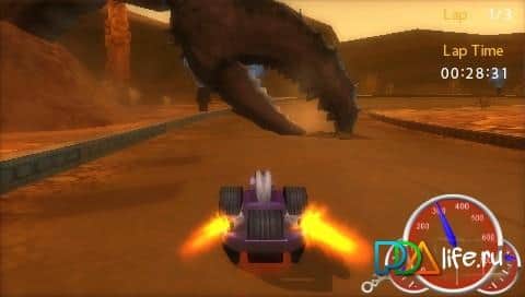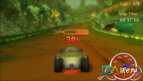 Ppsspp gold v.1.4.2 изначально притормаживает.но если в настройках система--эмулируемая частота psp поставить цифру 50 и перезагрузить игру.то вполне играбельно.про саму игру.она прикольная.трасы с ловушками и т.п.в общем прикольная гоночка.